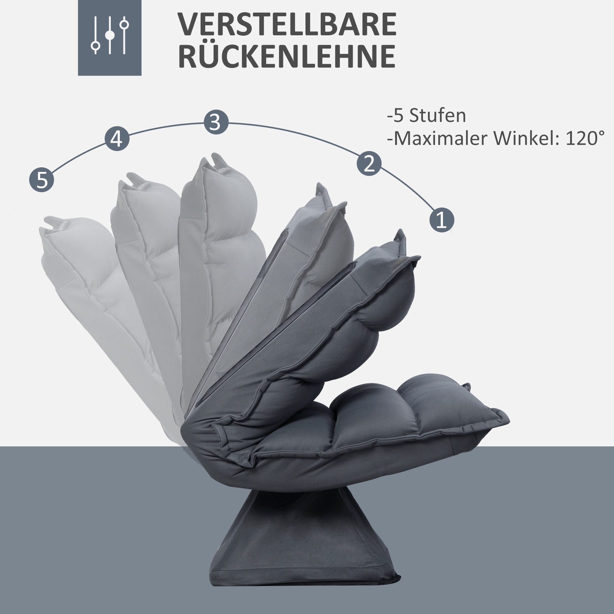 Tags: °, 360, 5-fasen, 839-430V00CG, basis, Donkergrijs, leunstoelbankbinkstoel, Met, Ontspan, roteerbare, rugleuning, staal, Verstelbare, vloerstoel