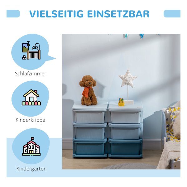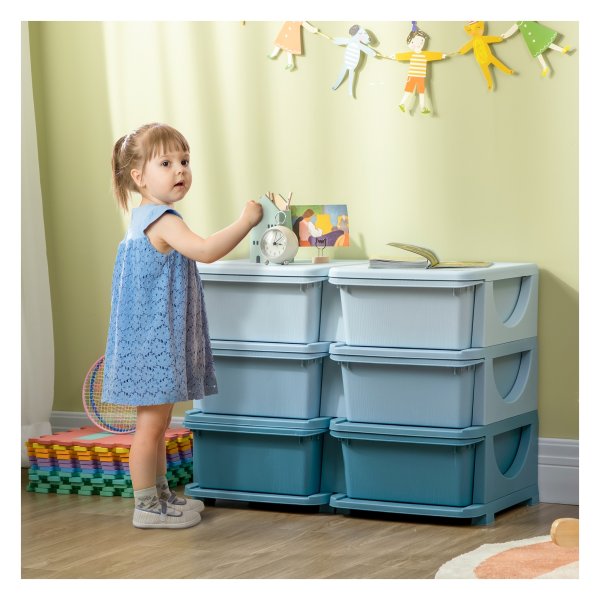 Met de speelgoedkist haal je een handige en kleurrijke opbergoplossing in huis voor al het speelgoed van je kinderen. Met maar liefst zes grote laden en een brede plaat biedt deze speelgoedorganizer voldoende ruimte voor speelgoed, kleding, poppen en meer. Zo blijft de kinderkamer netjes en georganiseerd, met alle favoriete spulletjes van je kinderen binnen handbereik.
