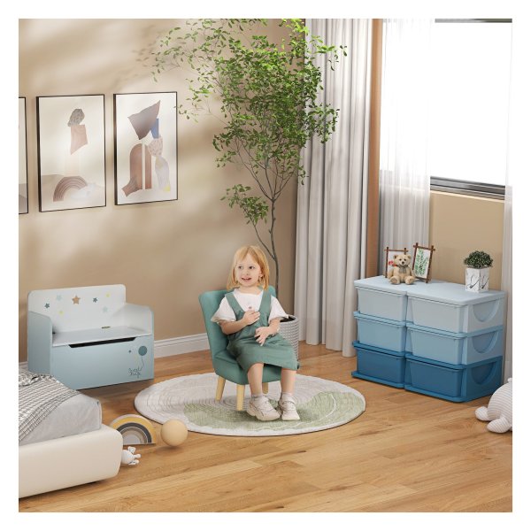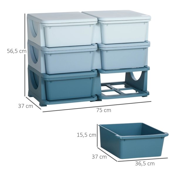 De blauwe kleurtonen van deze speelgoedorganizer maken het niet alleen een praktische opbergoplossing, maar ook een leuke toevoeging aan de kinderkamer. Het verhoogde ontwerp beschermt tegen vocht en maakt deze speelgoedkist ideaal voor slaapkamers, kinderkamers, kleuterscholen of zelfs de woonkamer.