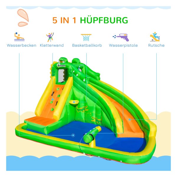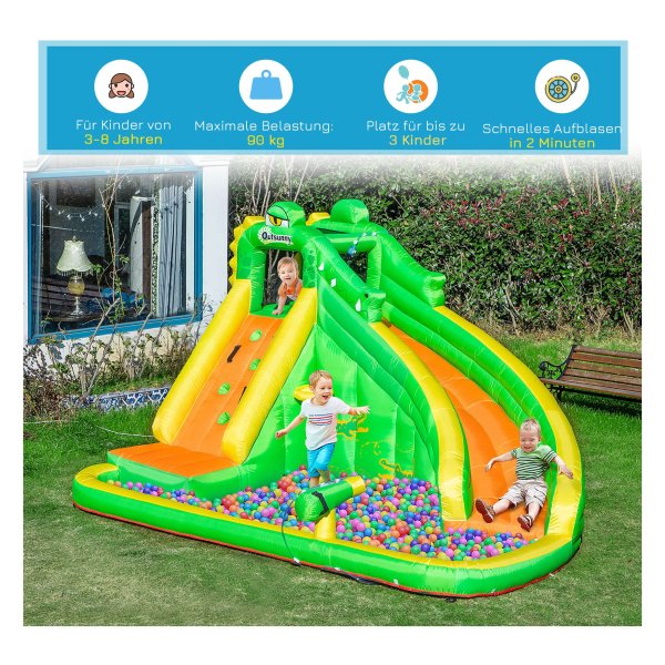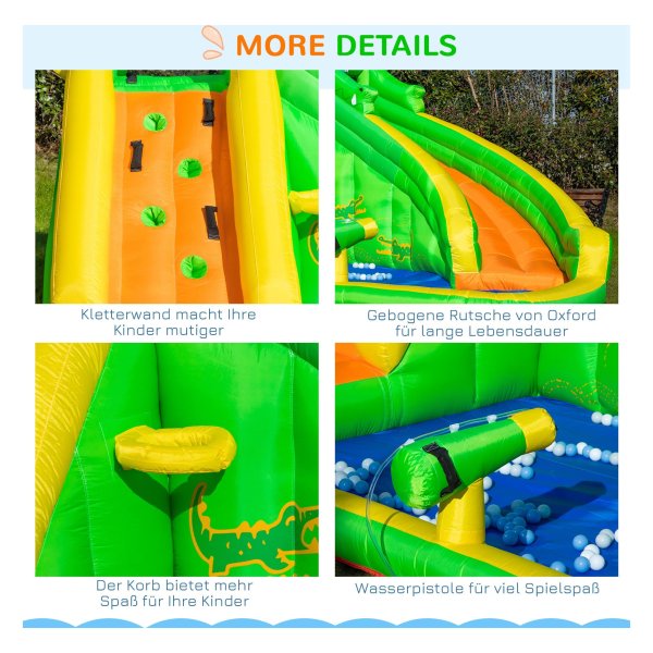 Het springkasteel van Zaza Home is ontworpen met verschillende speelzones, waaronder een glijbaan, zwembad, trampoline en klimwand. Hierdoor kunnen kinderen zich uitleven en eindeloos spelen, terwijl ze hun energie kwijt kunnen door te rennen, klimmen, springen en glijden.