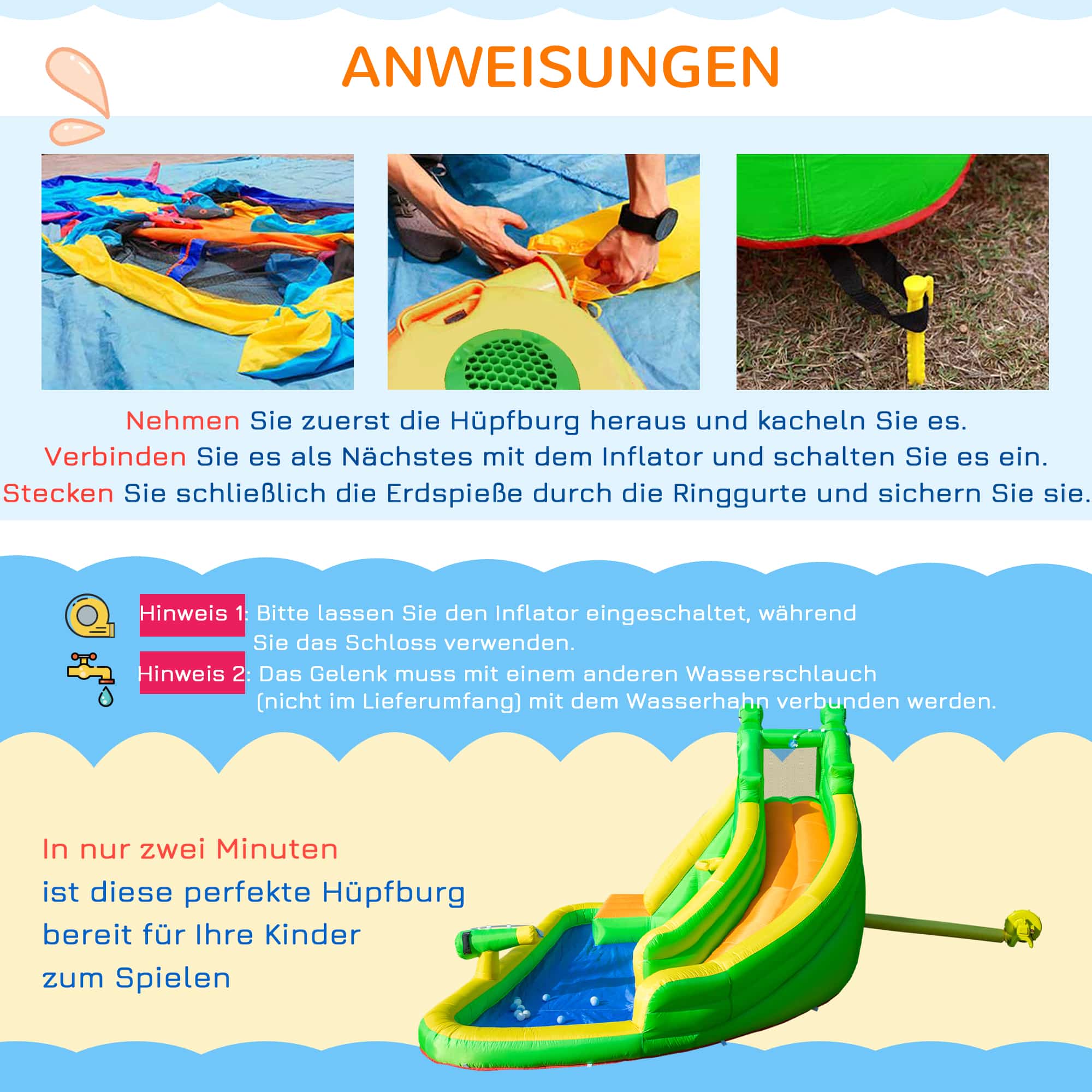 Met de hoogwaardige elektrische luchtblazer die bij het springkussen wordt geleverd, kan het hele kasteel in slechts 2 minuten worden opgeblazen. Zo bespaar je tijd en kunnen de kinderen sneller beginnen met spelen.