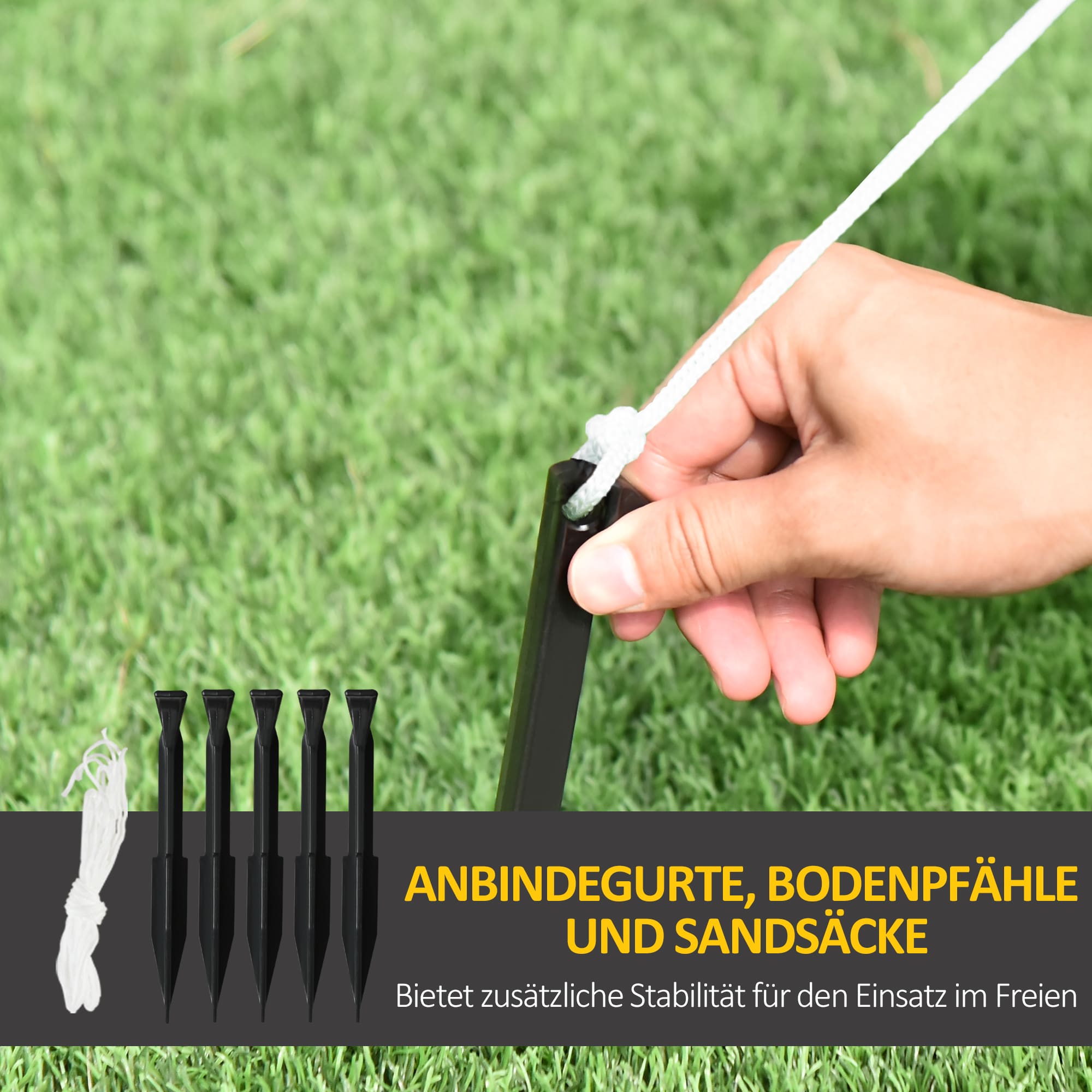 Bullet Point 5 | De reikwijdte van de levering omvat vijf haring, twee spanningstouwen en twee zandzakken die voorkomen dat hun tuindecor in de sprookjeswereld wordt geblazen |