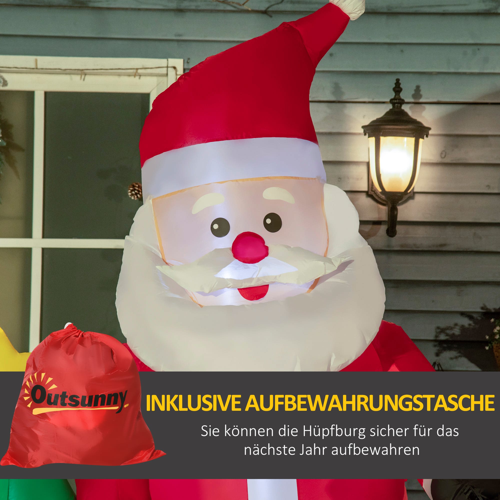 Bullet Point 3 | Met LED-verlichting: de ingebouwde LED-lichten van de kerstman die je tuin verlicht en een sprookjesachtige, gezellige sfeer zorgen die bekend is vanaf de kindertijd |