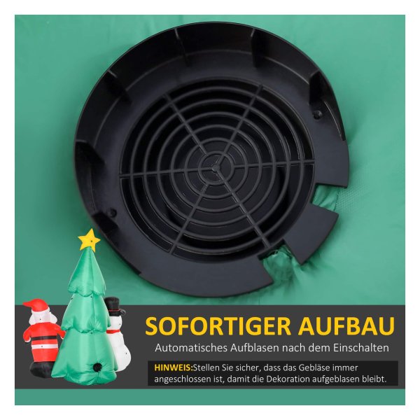 Zorg ervoor dat de ventilator altijd is aangesloten om de decoratie opgeblazen te houden. Gebruik de kerstboom niet bij slecht weer om de levensduur te verlengen.