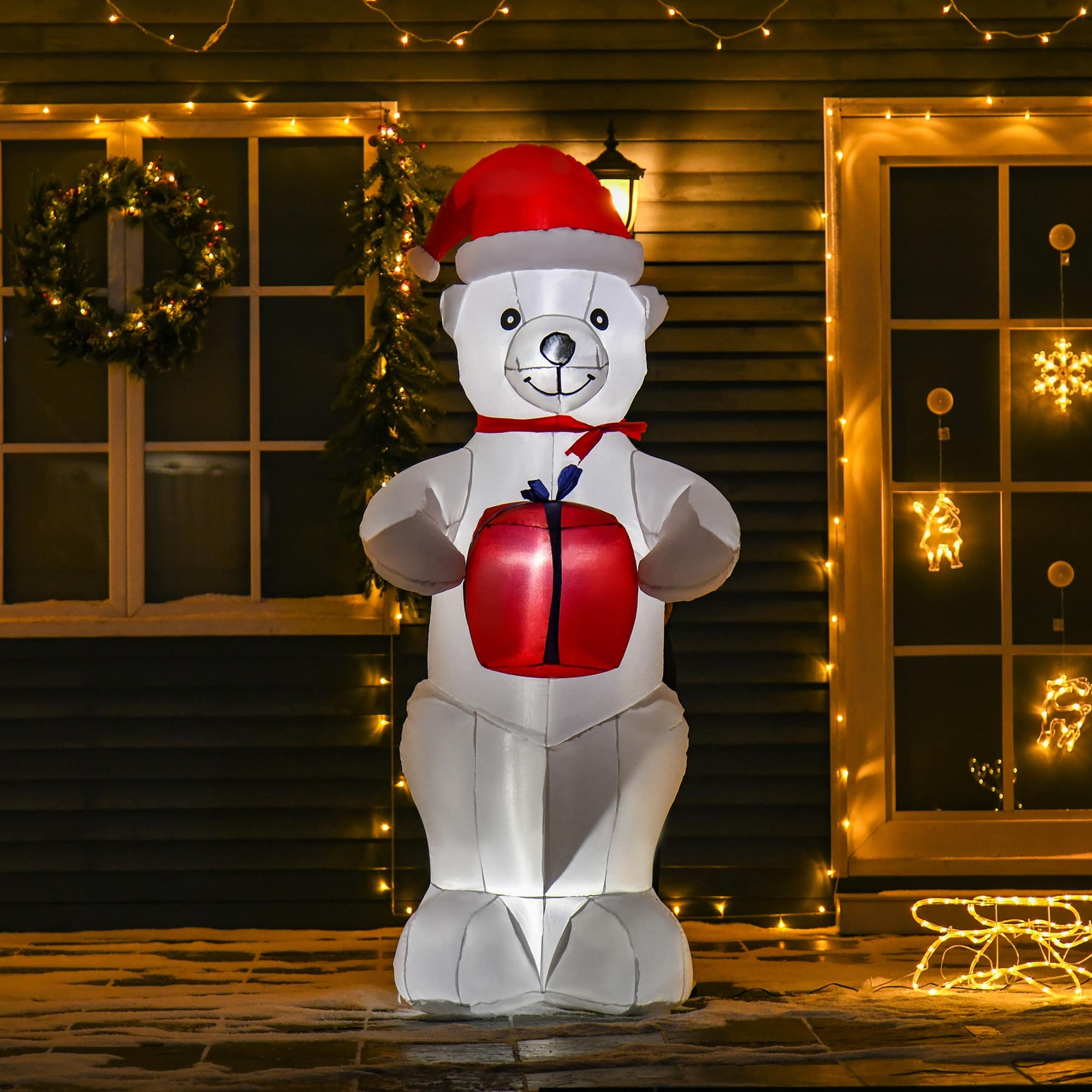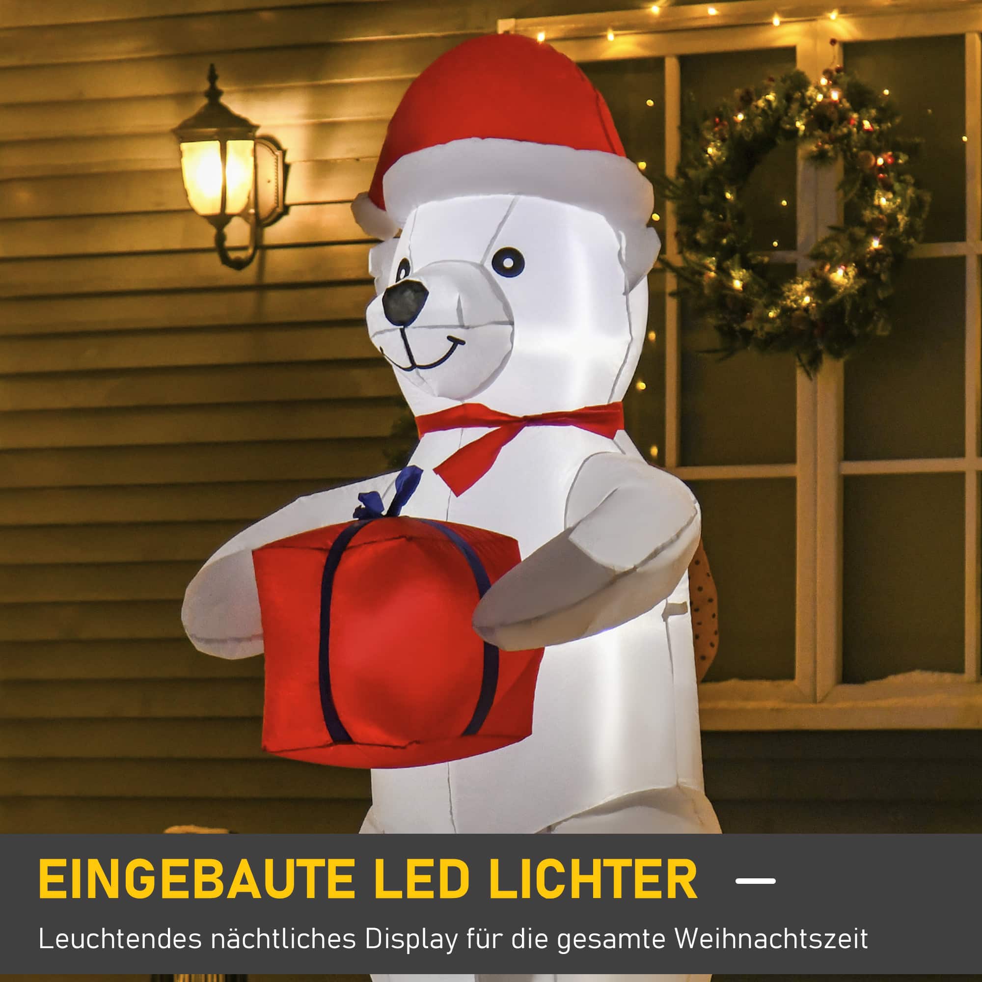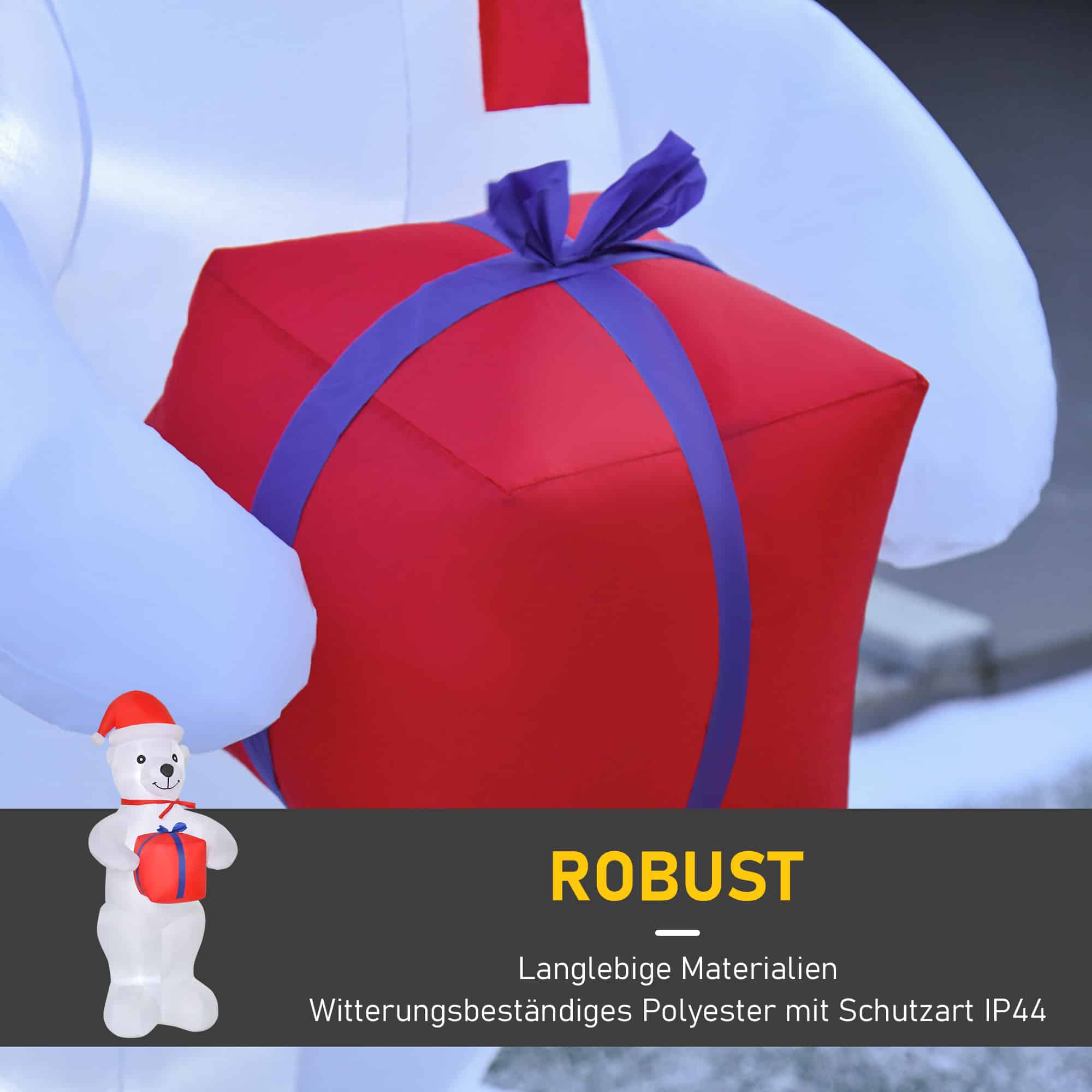 | Bullet Point 1 | Kerstdecoratie: deze 1,8 m grote opblaasbare ijsbeer met geschenkdoos brengt een kerstsfeer met elk kerstfeest of thema-evenement |