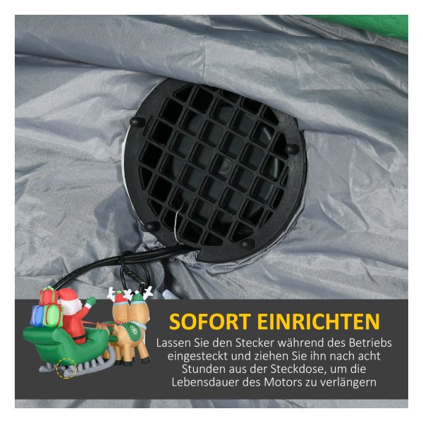 De Opblaasbare Kerstman met Rendier wordt geleverd met alle benodigde accessoires, waaronder acht haringen, vier koorden, twee zandzakken, en een handleiding voor eenvoudige installatie. Zorg ervoor dat de ventilator altijd is aangesloten op de stroombron om het product goed opgeblazen te houden.