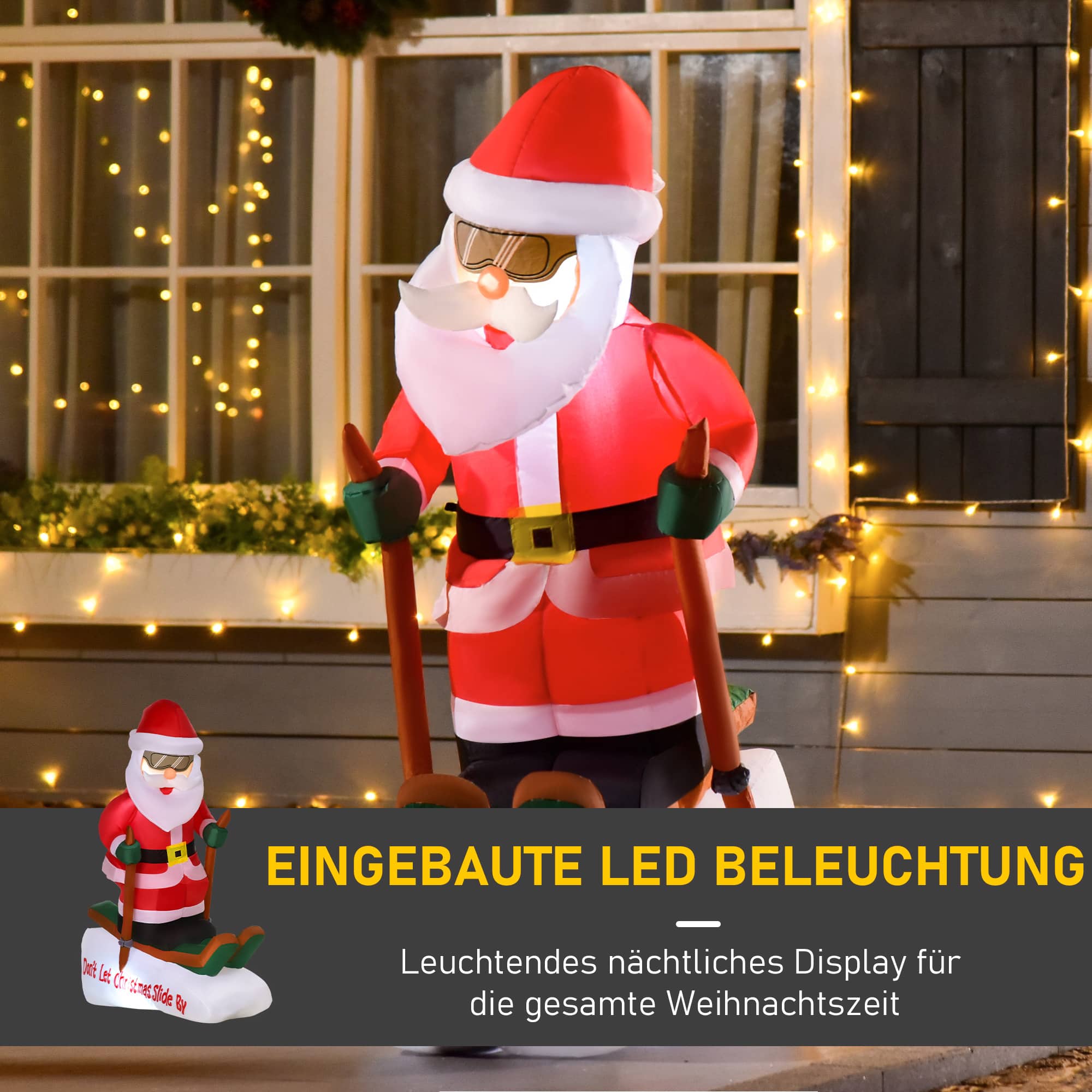 Bullet Point 1 | Kerstdecoratie: deze 1,2 m hoge opblaasbare kerstdecoratie met Santa Claus op ski's creëert een feestelijke sfeer |