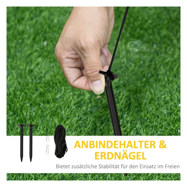 De feestdecoratie wordt geleverd met 2 Earth-skewers, 2 trekbanden, 1 interne ventilator en 2 zandzakken voor maximale stabiliteit. Zo blijft de pinguïn stevig staan, zelfs bij harde wind of slecht weer.