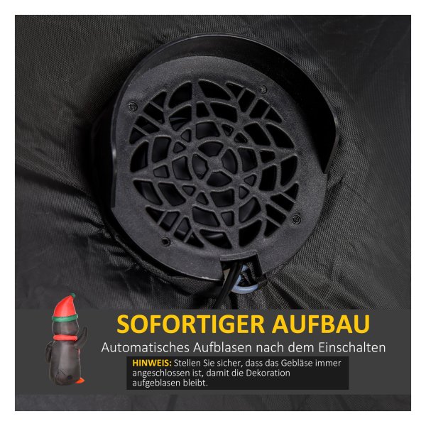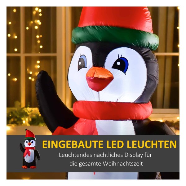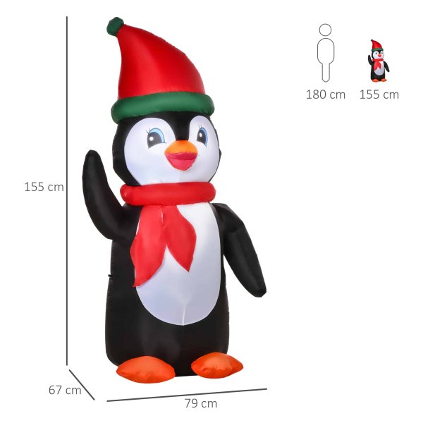 Met de opblaasbare feestdecoratie van creëer je een feestelijke sfeer tijdens de feestdagen. De 1,6 meter hoge opblaasbare pinguïn met verlichting is gemaakt van waterdichte polyester stof, waardoor hij zowel binnen als buiten gebruikt kan worden. Laat je tuin stralen en breng een glimlach op het gezicht van voorbijgangers met deze opvallende decoratie.