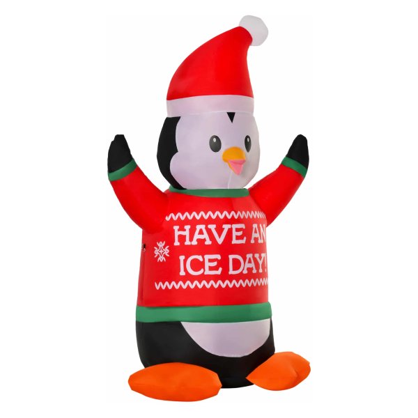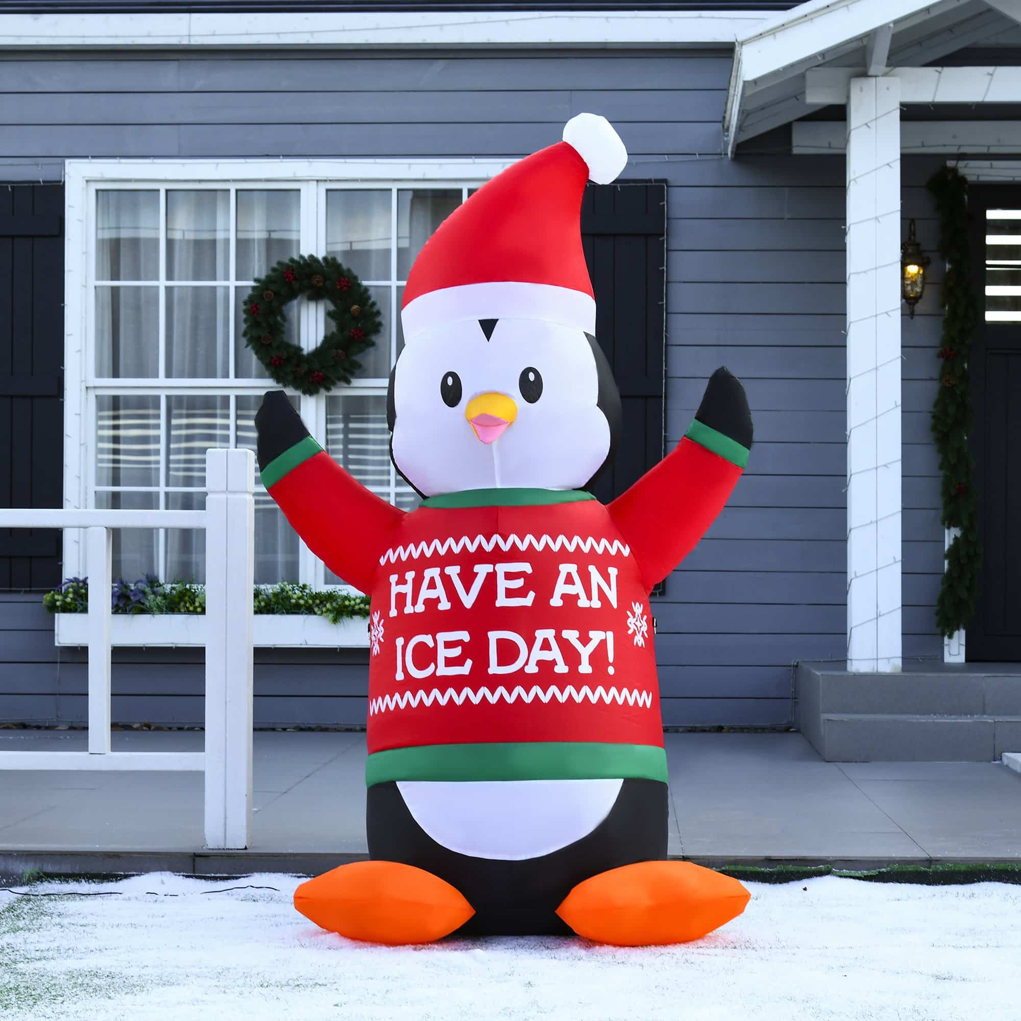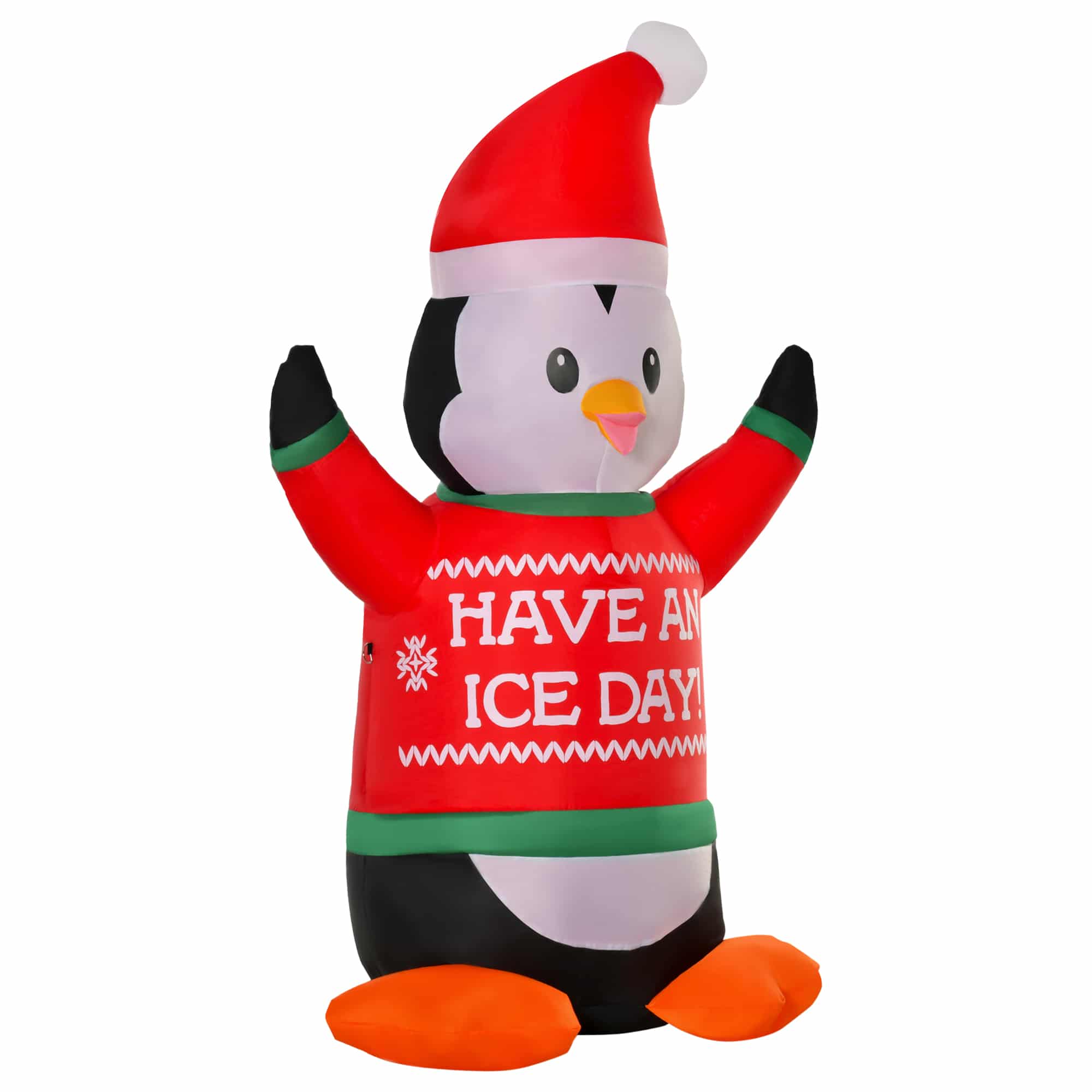 Bullet Point 1 | Kerstdecoratie: deze 1,9 m grote opblaasbare kerstdecoratie met een pinguïn die een kerstmuts draagt en een trui creëert een feestelijke sfeer |