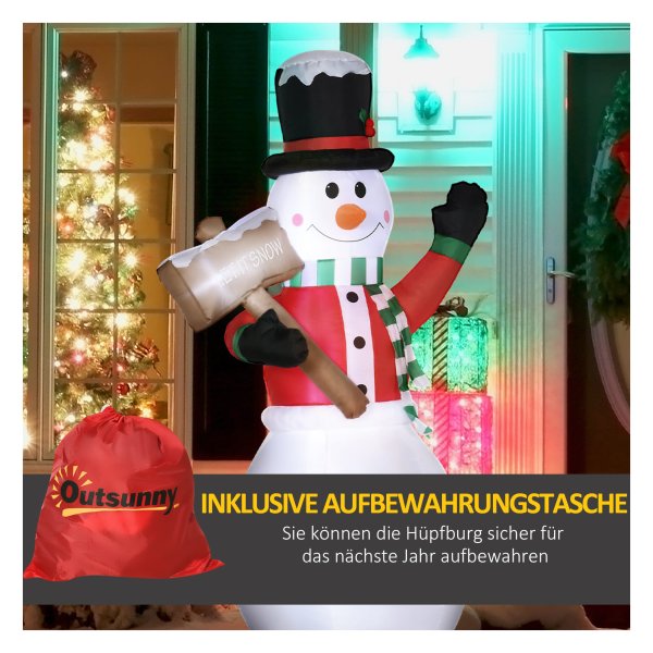 Wil jij jouw tuin omtoveren tot een kerstparadijs? Dan is deze feestelijke tuintecoratie van Outsunny echt iets voor jou! Met deze opblaasbare sneeuwman met LED-verlichting creƫer je een gezellige en warme sfeer in jouw buitenruimte tijdens de donkere winterdagen. Dankzij de elektrische ventilator is deze sneeuwman snel opgezet en klaar om jouw tuin te verlichten.
