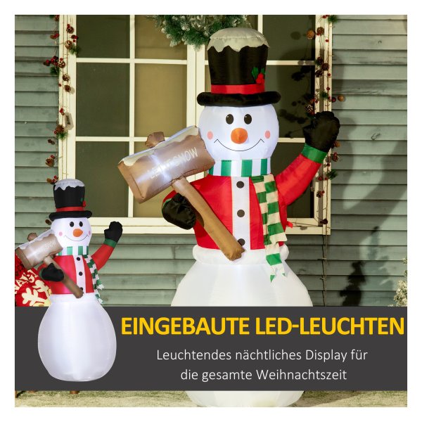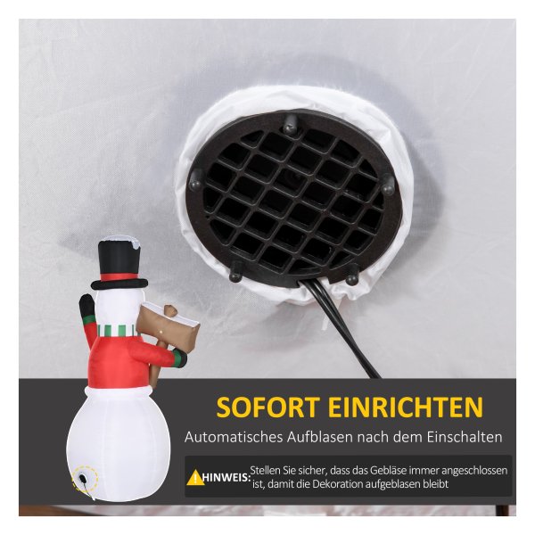 - De opblaasbare sneeuwman is eenvoudig op te zetten en af te breken met de meegeleverde elektrische ventilator.