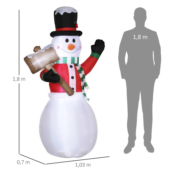 Deze expressieve kerstverlichting zal de kinderdromen doen uitkomen en een onvergetelijke kerstervaring bieden. Met afmetingen van 103L x 70B x 180H cm is deze opblaasbare sneeuwman een echte eyecatcher in jouw tuin.