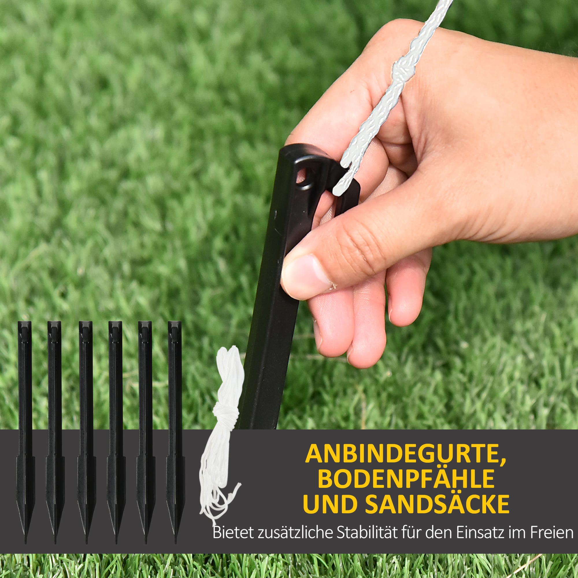 Bullet Point 5 | De reikwijdte van de levering omvat vier haring, twee spanningstouwen en twee zandzakken die voorkomen dat hun tuindecor in de sprookjeswereld wordt geblazen |