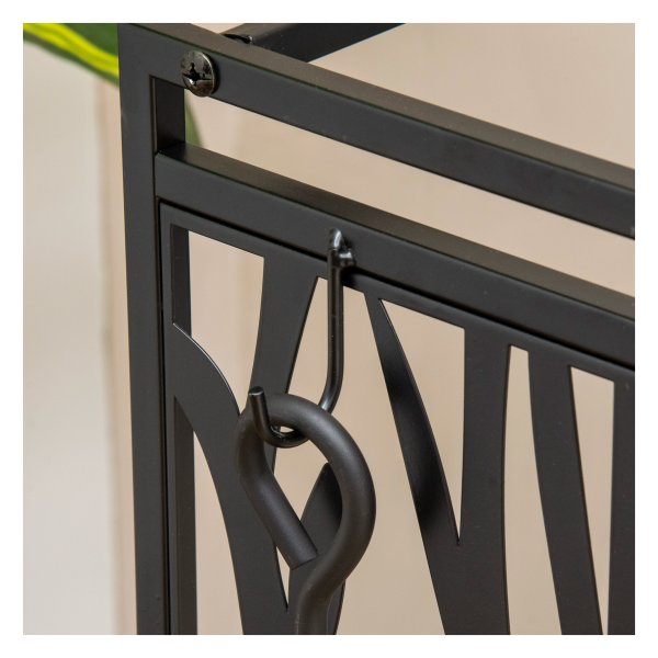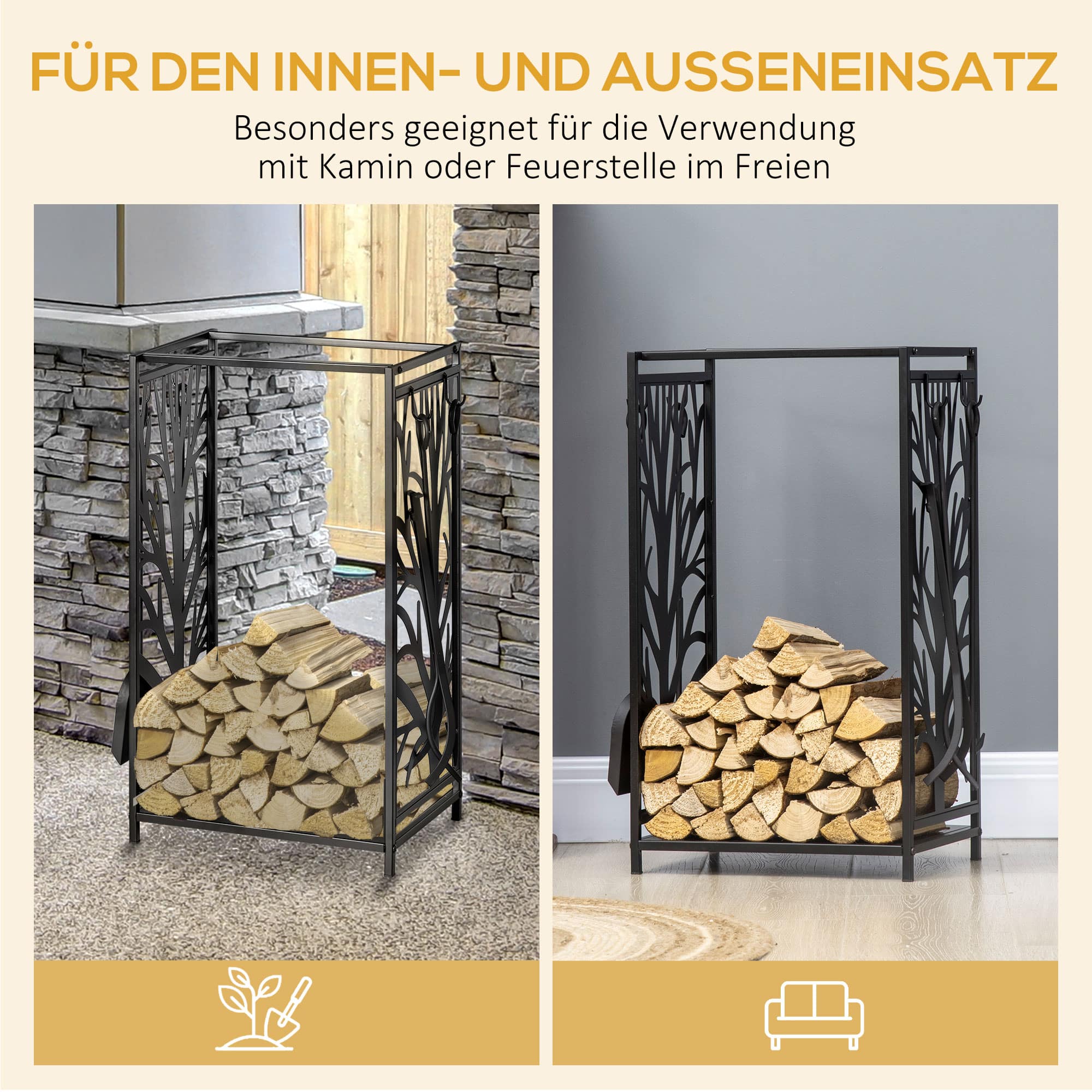 De haardstandaard wordt geleverd inclusief bezems, schoppen, schürhaken en tangen, zodat u direct aan de slag kunt met het vullen en onderhouden van uw open haard. De eenvoudige assemblage vereist slechts minimale inspanning en u bent binnen no-time klaar om te genieten van uw haardvuur.