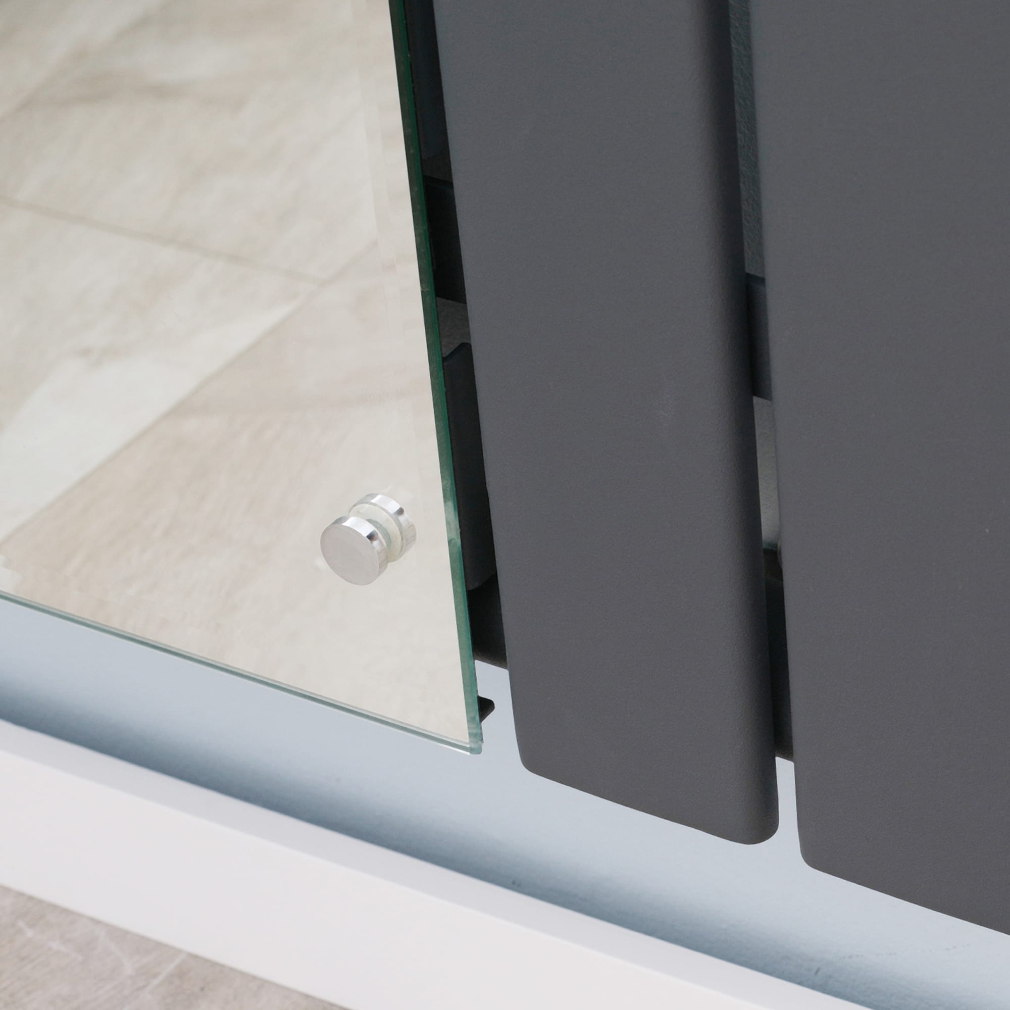 | Bullet Point 5 | Grijs van staal, gecombineerd met de spiegel in het midden, verrijk je interieur met tijdloze elegantie |