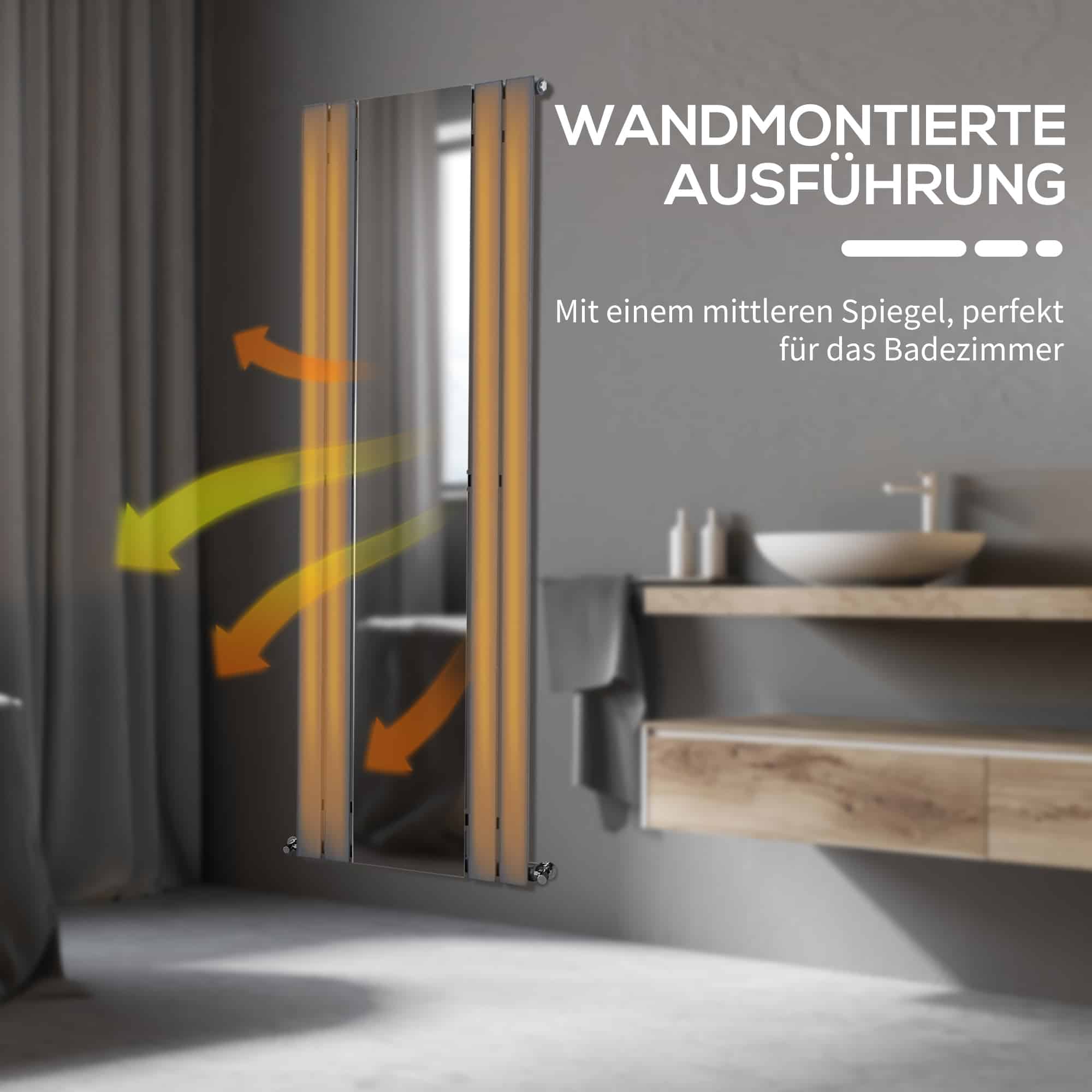 - De middelste spiegel van de verwarming is ideaal voor gebruik in de badkamer, waar het niet alleen warmte geeft maar ook dient als praktische spiegel.