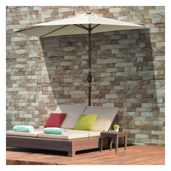 De Terrasparasol is de ideale oplossing voor iedereen die op zoek is naar een stijlvolle en functionele parasol voor hun terras of balkon. Met zijn halfronde ontwerp en beige kleur past deze parasol perfect in elke buitenruimte.
