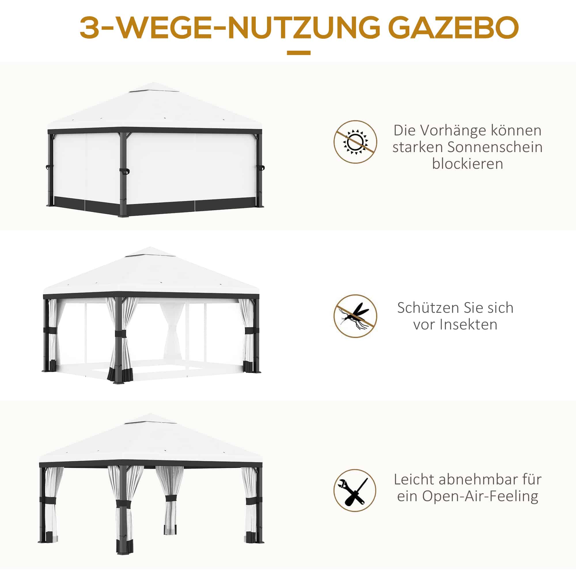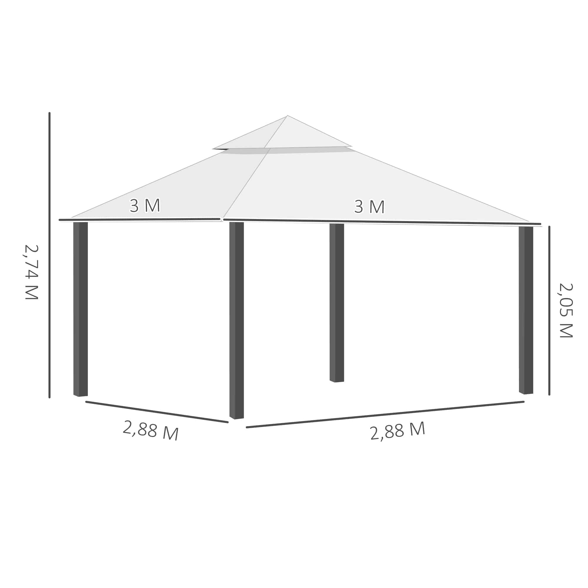 Met een dakoppervlak van 3 x 3 meter is het paviljoen ideaal voor tuinfeesten, barbecues, of ontspanning in de schaduw. De netpanelen zorgen voor ongestoord genieten van het buitenleven en bescherming tegen de zon.