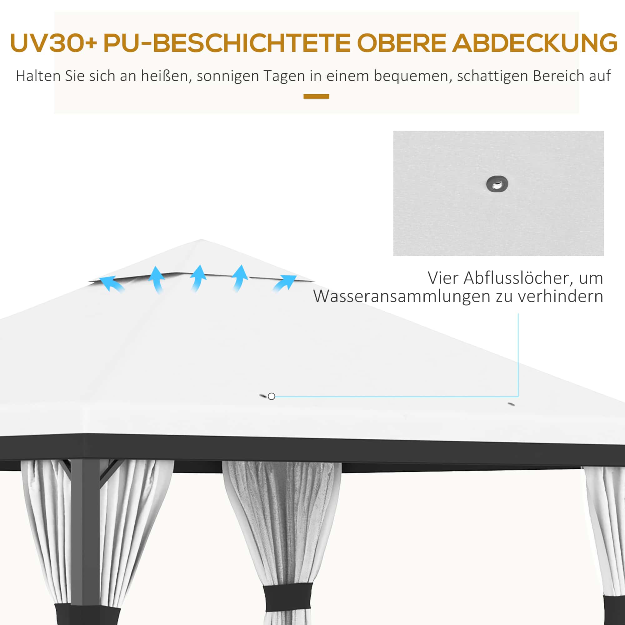 - UV-bescherming: Dak van PU-gecoat polyester biedt uitstekende bescherming tegen schadelijke UV-stralen.