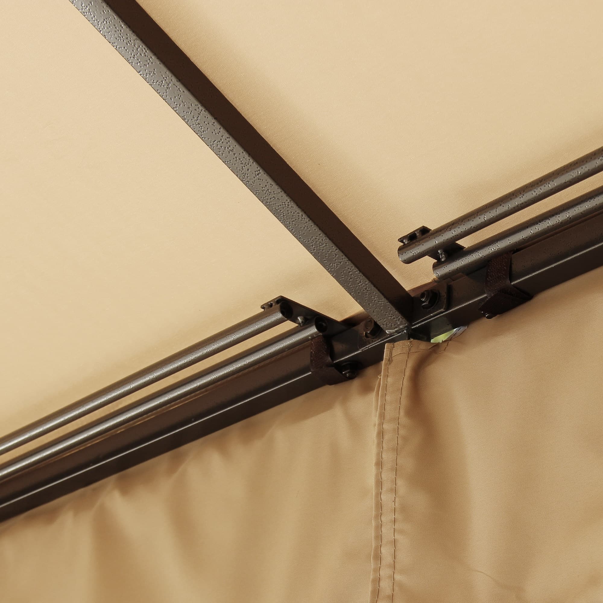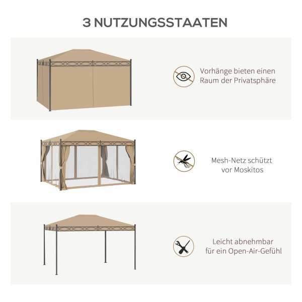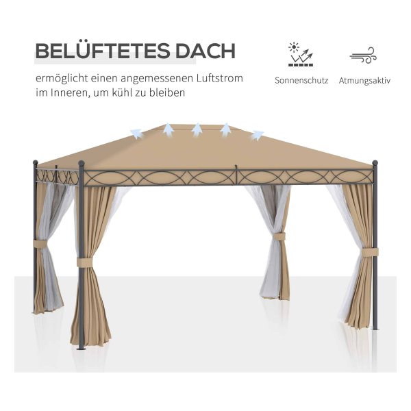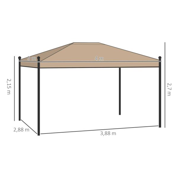 Het Tuinpaviljoen heeft een afmeting van 4 x 3 meter en is gemaakt van een robuuste metaalconstructie voor extra stabiliteit. Het dak is UV-resistent en gemaakt van hoogwaardig plastic materiaal. Hierdoor bent u beschermd tegen schadelijke UV-stralen en geniet u van een aangename schaduwplek in uw tuin.