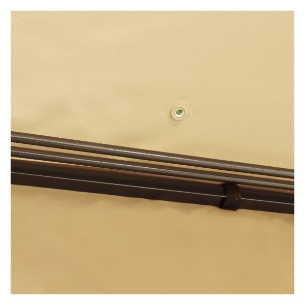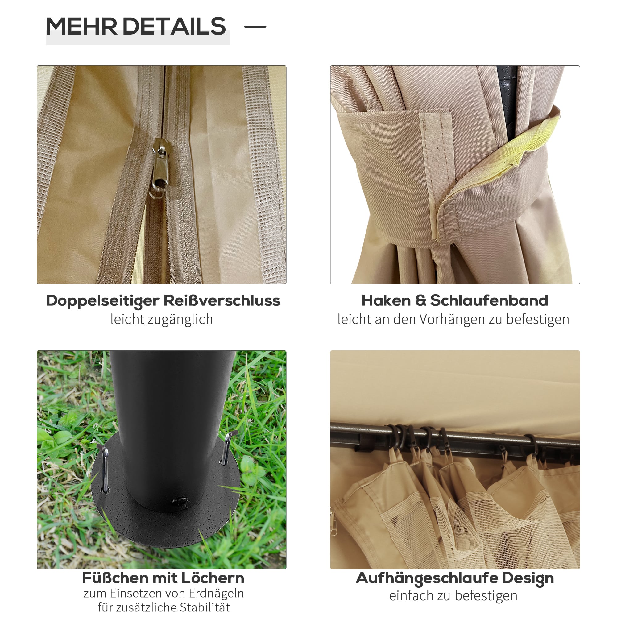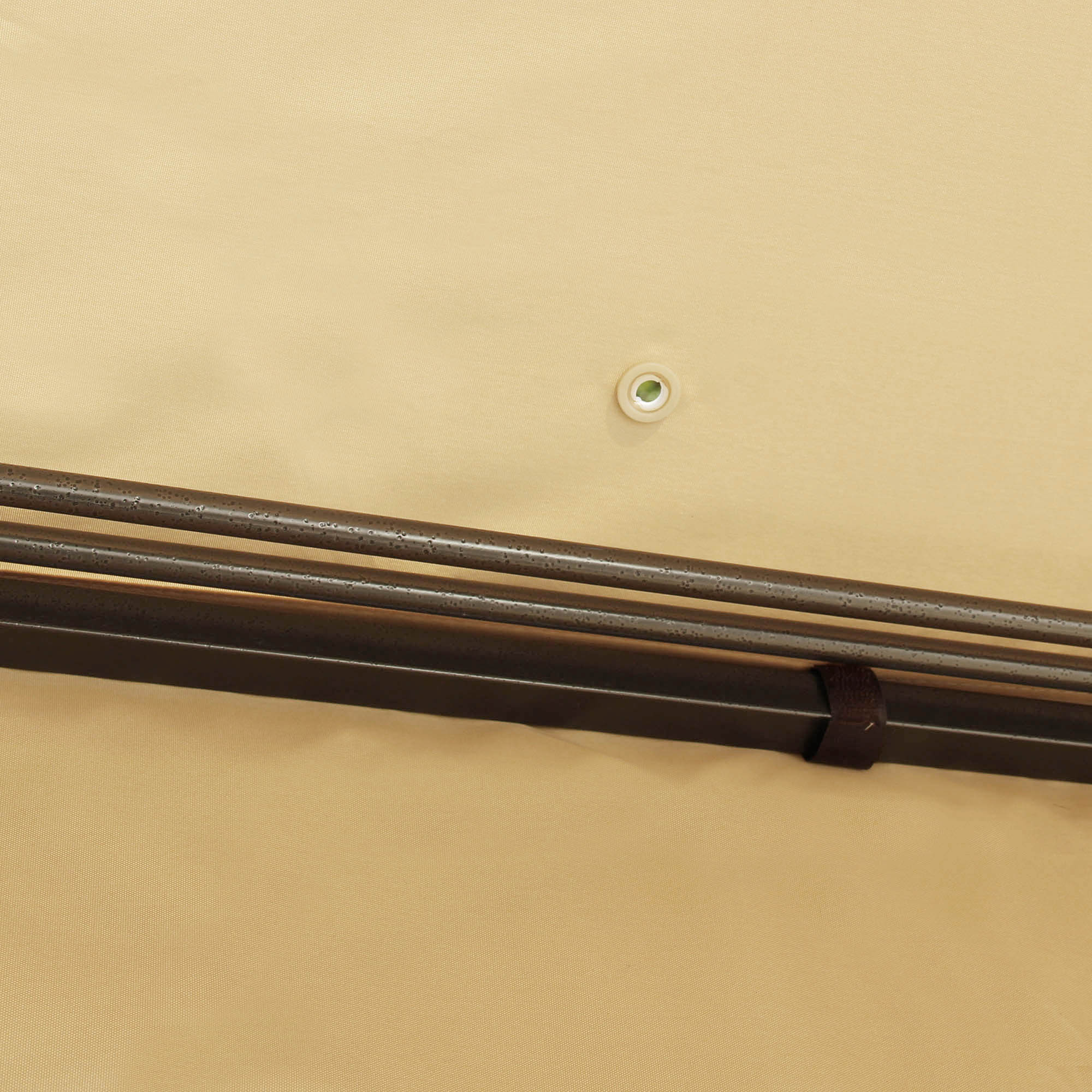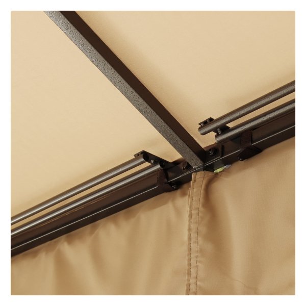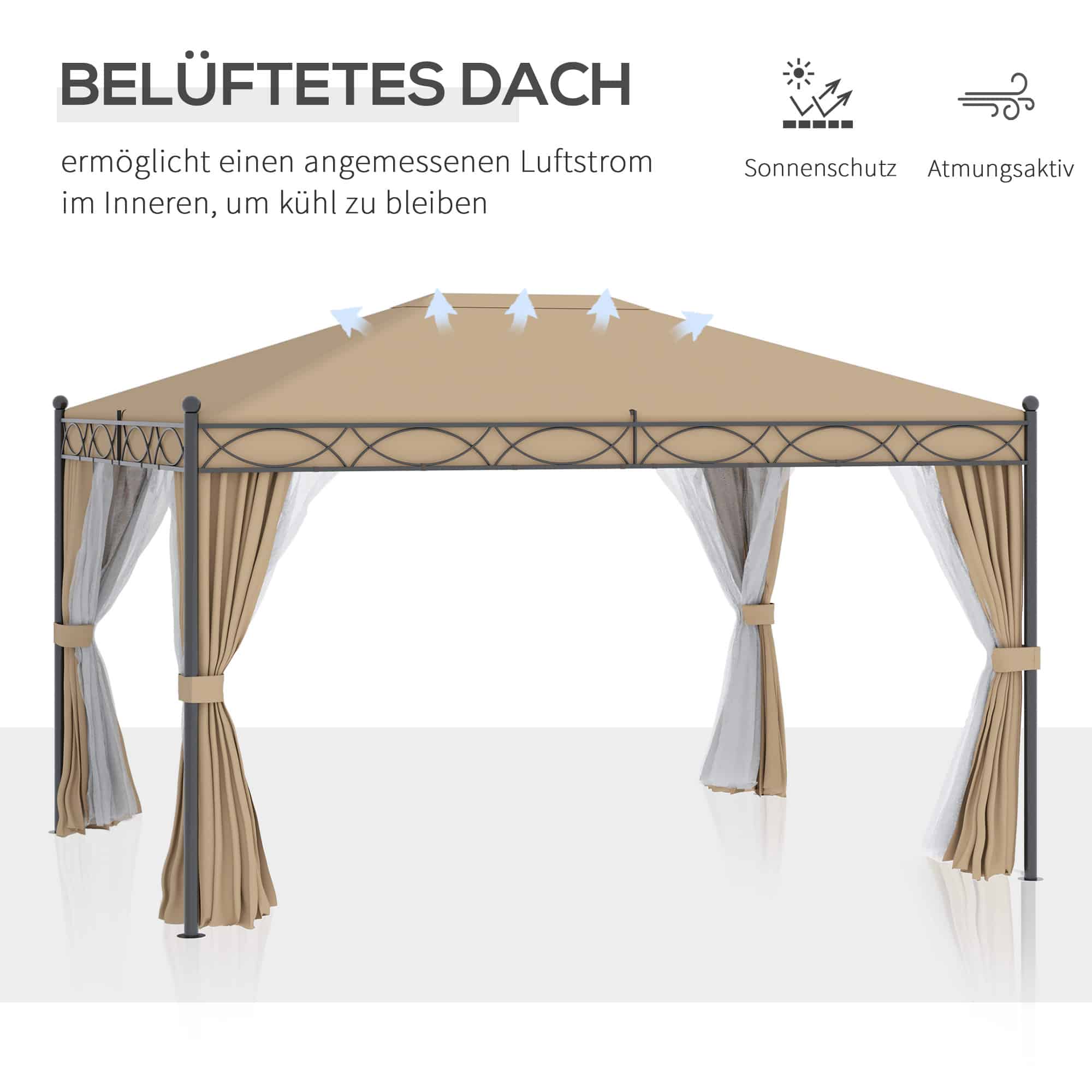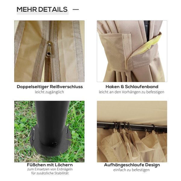 De zijwanden van het paviljoen zijn gemaakt van netwerkstof en bieden bescherming tegen muggen en andere insecten. Daarnaast dienen ze als praktisch privacyscherm, zodat u ongestoord kunt genieten van uw momenten in de tuin. De ventilatieopening in het dak zorgt voor een goede luchtcirculatie binnenin het paviljoen, waardoor u altijd kunt genieten van een aangename temperatuur.
