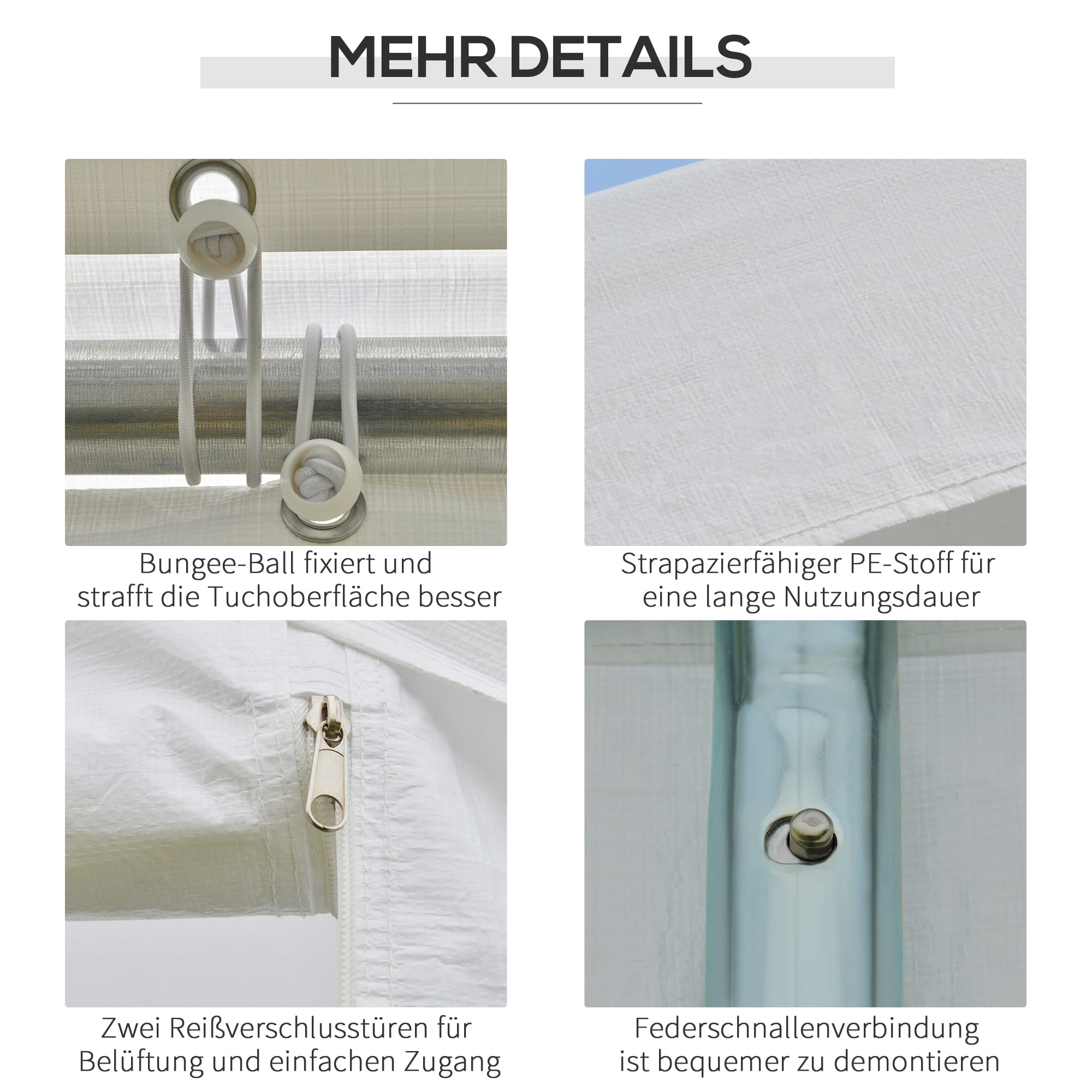 - De PE UV-bestendige luifel beschermt tegen wind, regen, UV-stralen en vuil, waardoor je feest ongehinderd kan doorgaan, ongeacht de weersomstandigheden.