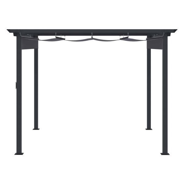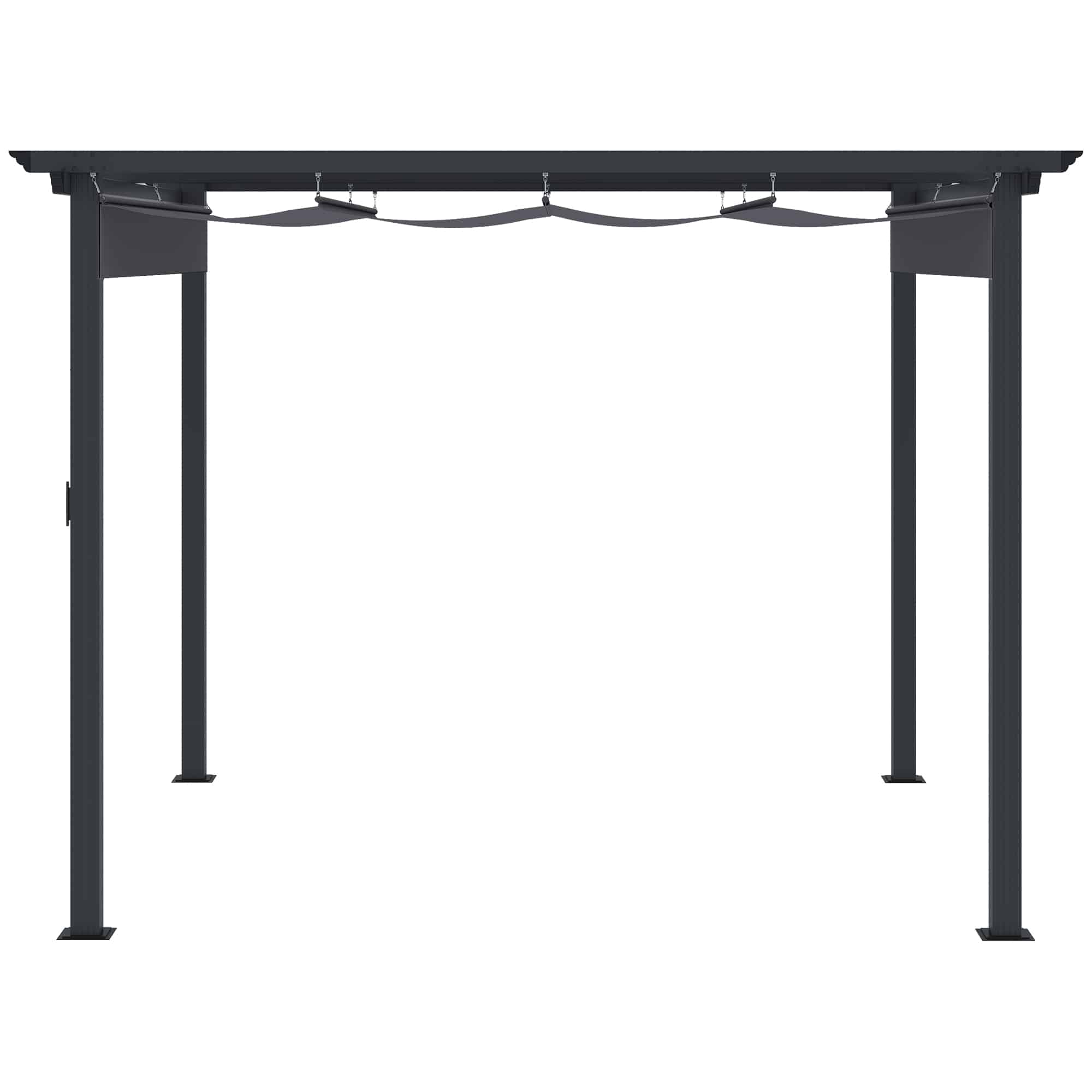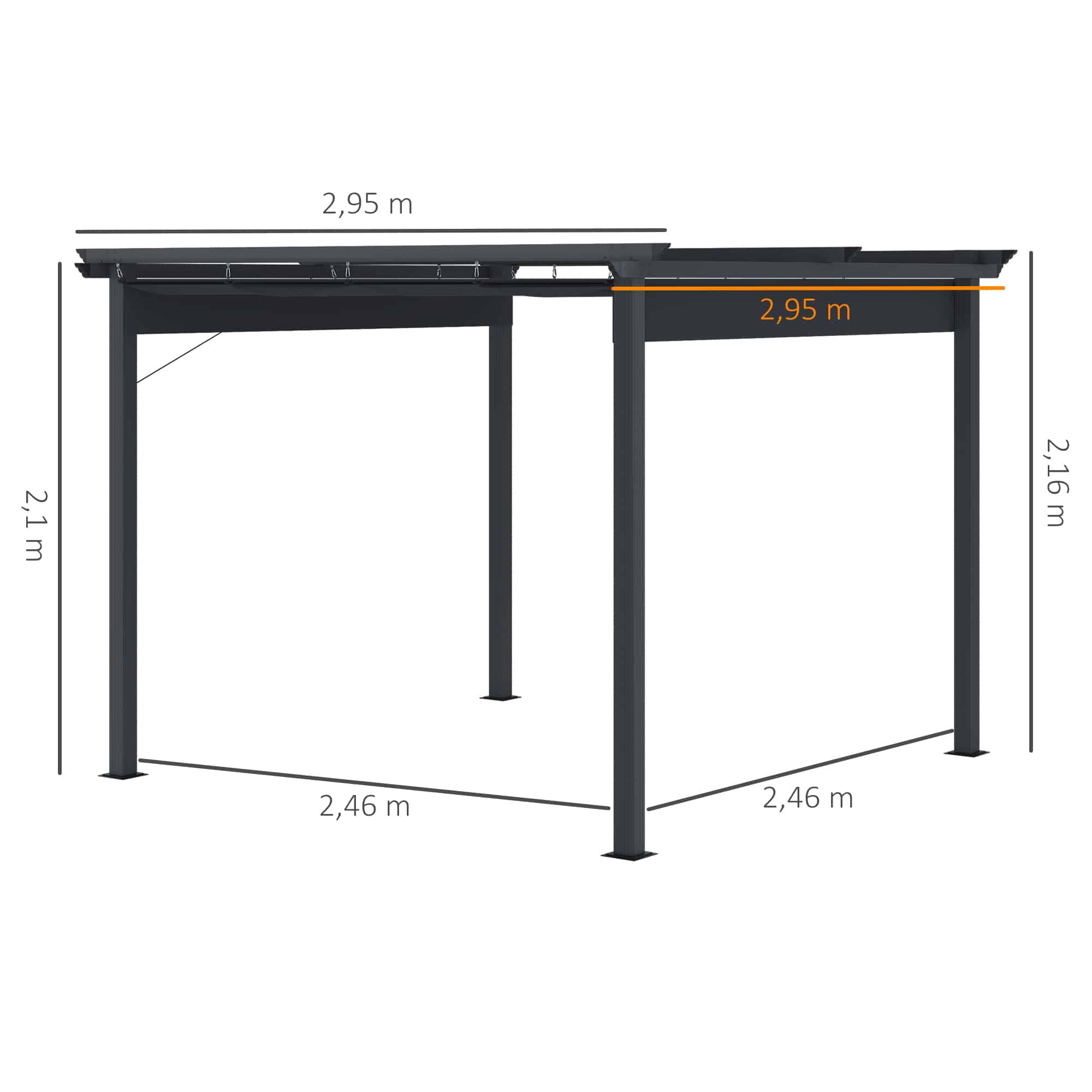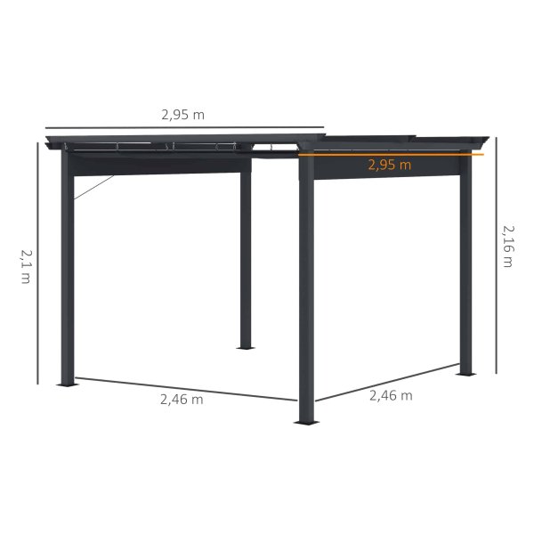 De grijze kleur met zwarte accenten geeft het terrasdak een moderne uitstraling die past bij elke stijl. Gemaakt van hoogwaardige materialen zoals aluminium en polyester voor duurzaamheid en betrouwbaarheid.