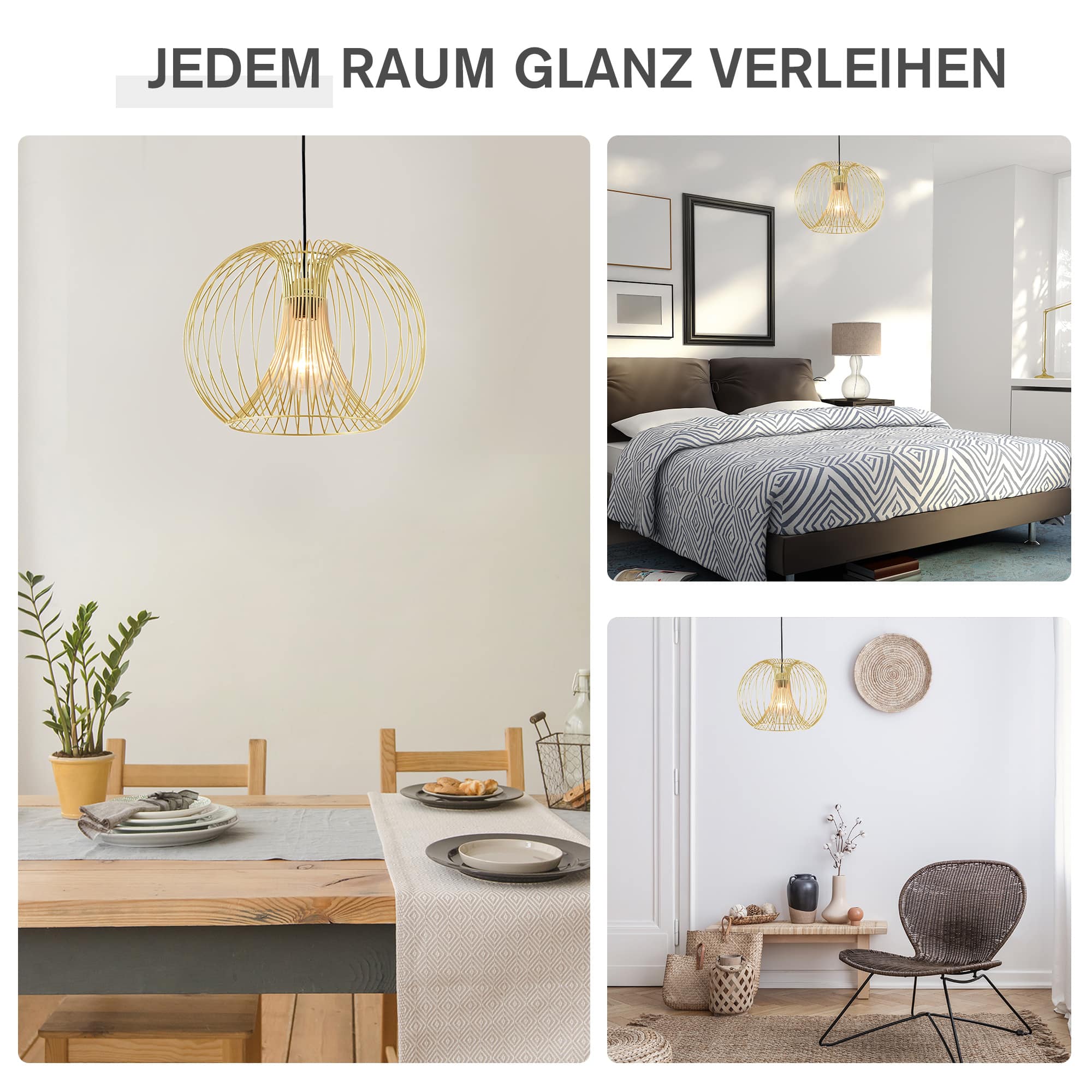 Deze hanglamp is ideaal voor verschillende ruimtes in huis, zoals de woonkamer, slaapkamer, eetkamer, keuken, badkamer en gang. Met zijn stijlvolle design en goudkleurige afwerking voegt de hanglamp een vleugje luxe toe aan elk modern huis.