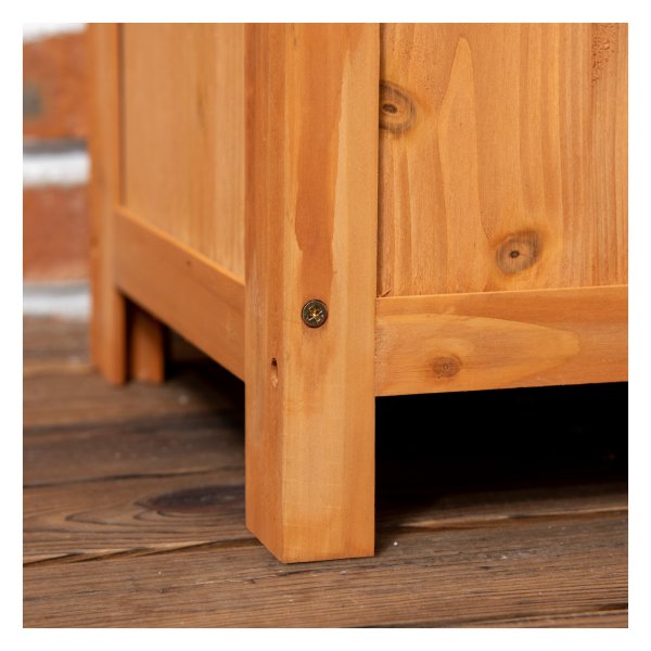 De GreenGarden plantenbak is vervaardigd uit stevig sparrenhout dat behandeld is met weerbestendige verf. Dit maakt de plantenbak bestand tegen verschillende weersomstandigheden, waardoor hij het hele jaar door buiten kan blijven staan.