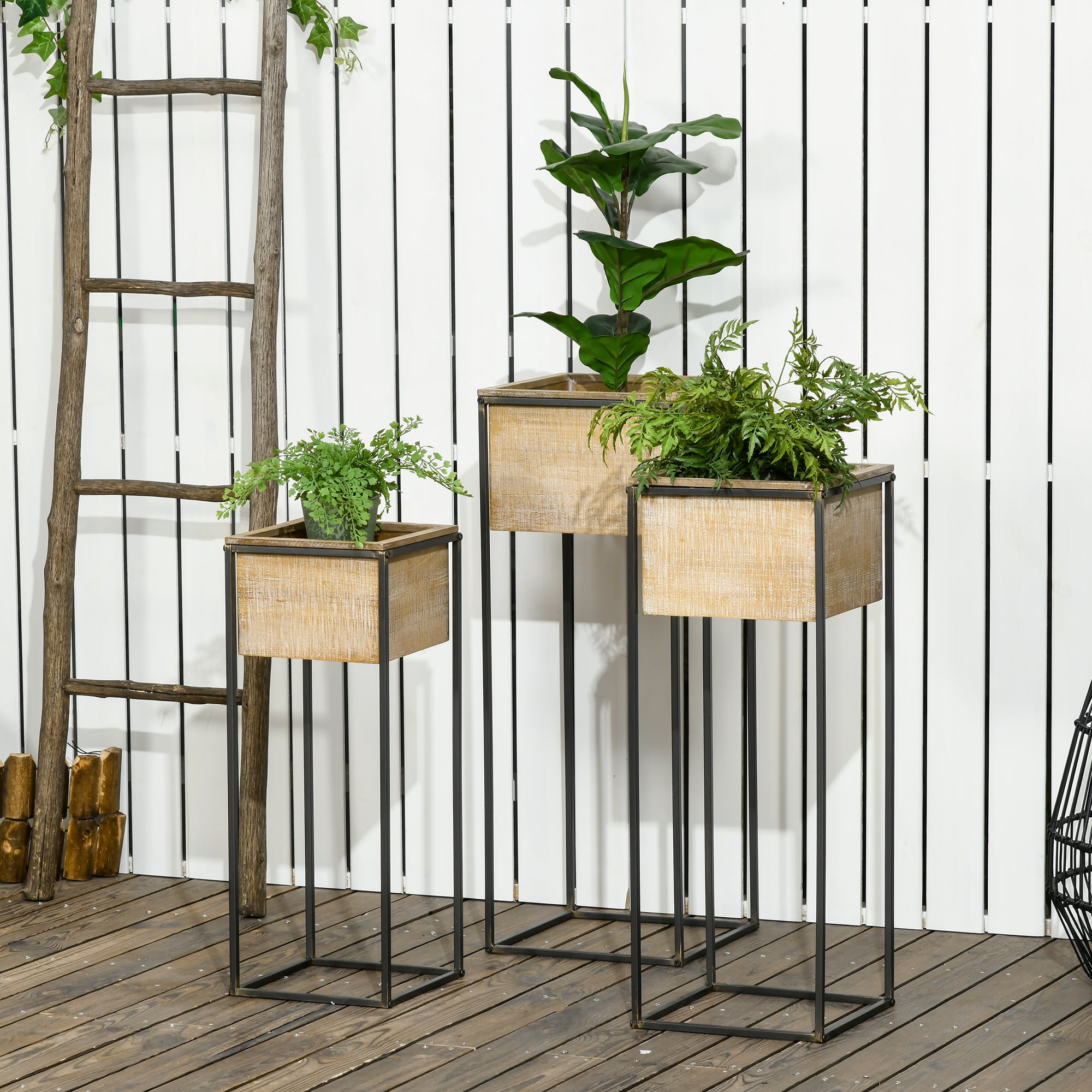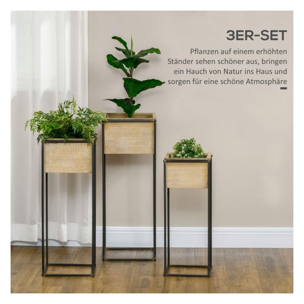 De set bestaat uit drie krukken van verschillende hoogten, waardoor u een gevarieerd arrangement kunt maken en uw planten op verschillende niveaus kunt plaatsen. Dit zorgt voor een interessant en dynamisch effect in uw interieur, waardoor het er levendiger uitziet.