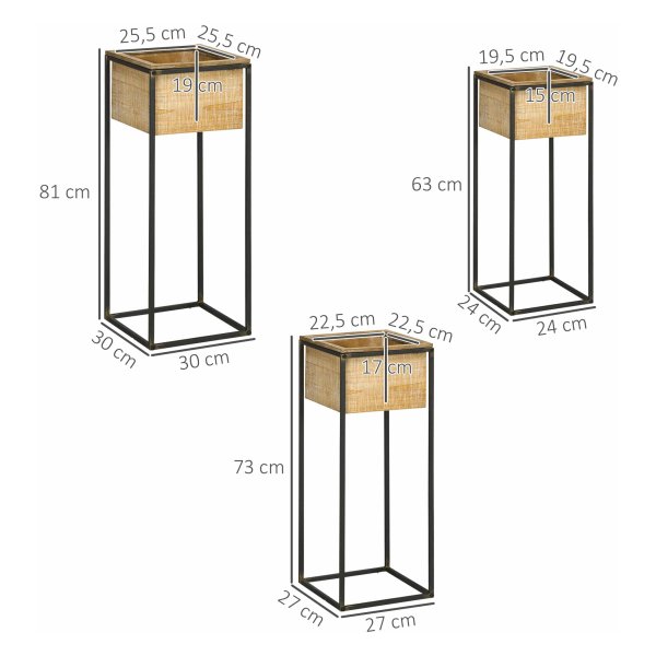Bullet Point 3 | Totale afmetingen van de bloemplank: 30L x 30B x 81h cm, 27l x 27b x 73h cm , 24l x 24b x 63H cm |