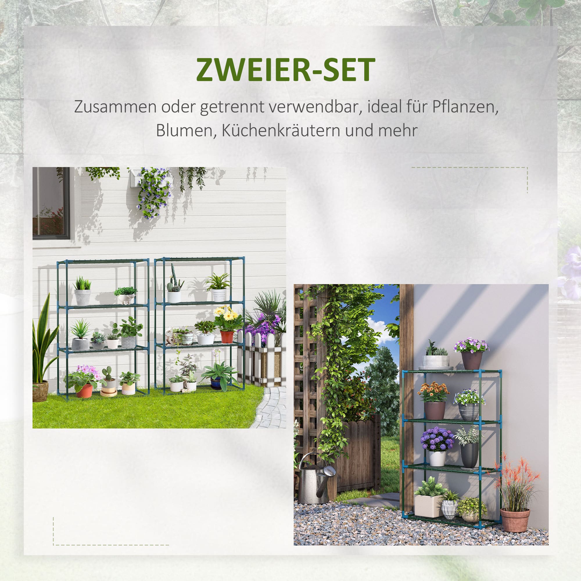 - Op elke etage vier ruime planken voor het organiseren en presenteren van je planten en decoraties