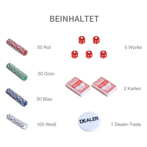 De pokerchips en accessoires in deze set zijn van hoge kwaliteit, waardoor ze langdurig gebruikt kunnen worden zonder aan kwaliteit in te leveren. De gestreepte pokerchips zorgen voor een professionele uitstraling aan de pokertafel en dragen bij aan de speelervaring.