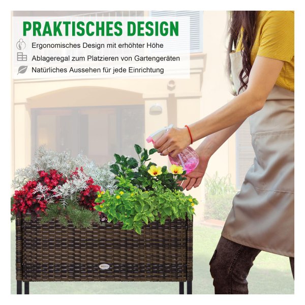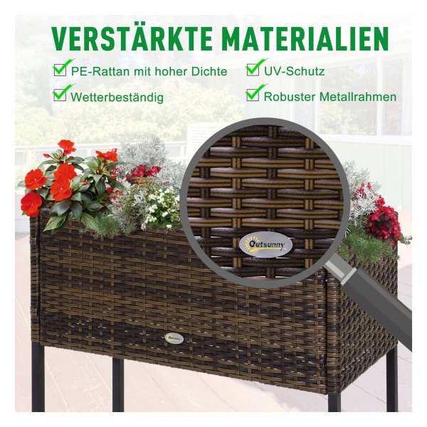 - Het duurzame polyrotan materiaal is weerbestendig en vervaagt niet, waardoor de bloembak een langdurige investering is
