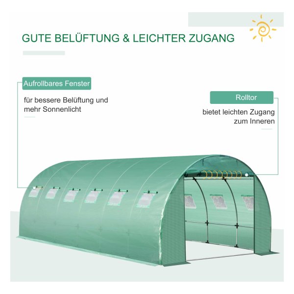 - Met een rolbare voordeur biedt deze folie snelle en gemakkelijke toegang tot de binnenkant, zodat je moeiteloos voor je planten kunt zorgen.