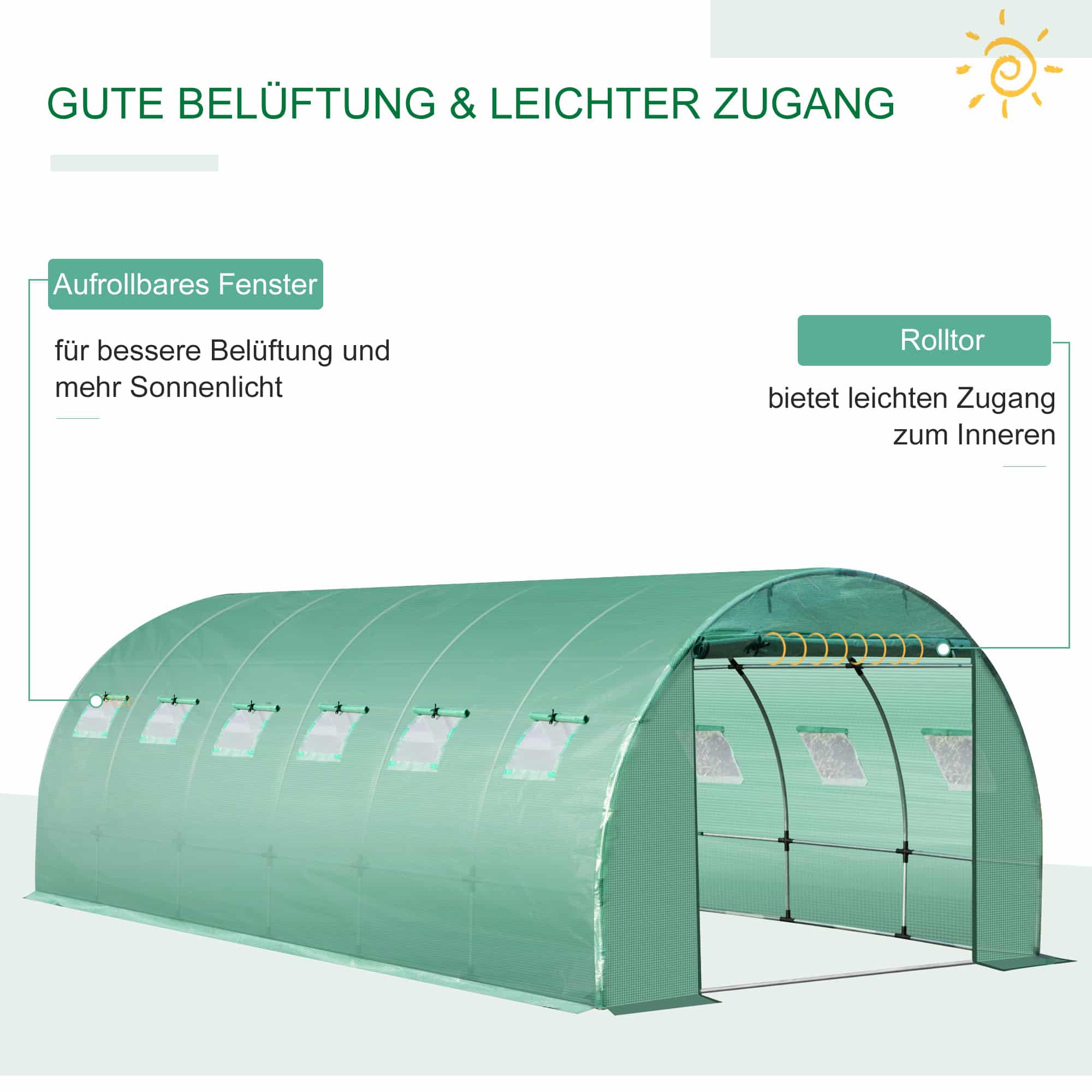 - De 12 ramen zorgen voor optimale ventilatie en laten meer zonlicht binnen, wat essentieel is voor de gezondheid en groei van je planten.