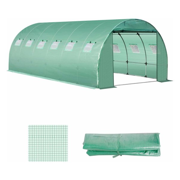De Tuintunnelfolie heeft een transparante kleur, zodat je planten voldoende natuurlijk licht ontvangen voor optimale groei. Gemaakt van hoogwaardig polyethyleen, heeft de folie een afmeting van 600L x 300B x 200H cm, wat ruimte biedt voor een groot aantal planten. De deur heeft een afmeting van 200L x 160B cm en de ramen zijn 37L x 37B cm groot.