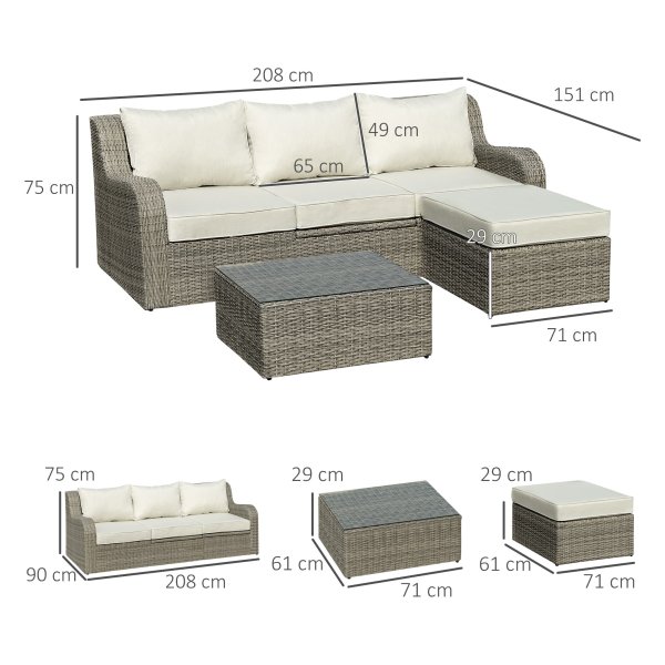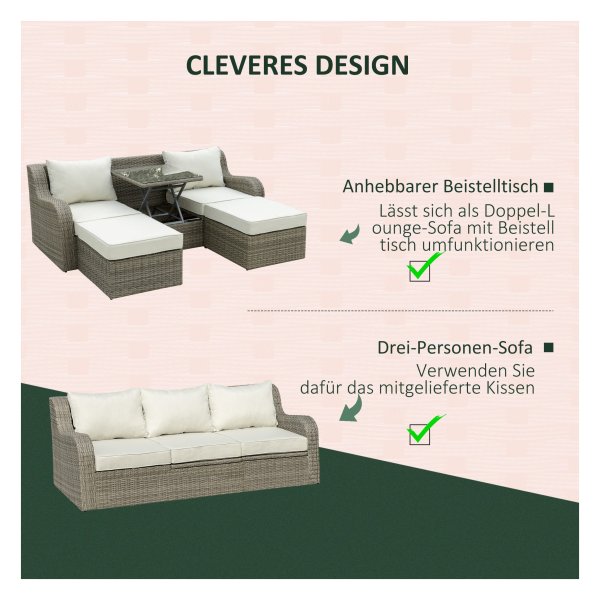 De tuinmeubelset is volledig aanpasbaar aan jouw wensen dankzij de vele combinatiemogelijkheden. Zo kan je de opstelling van de bank en voetenbanken naar eigen voorkeur aanpassen, waardoor je altijd een plekje kan vinden dat perfect bij jouw buitenruimte past.
