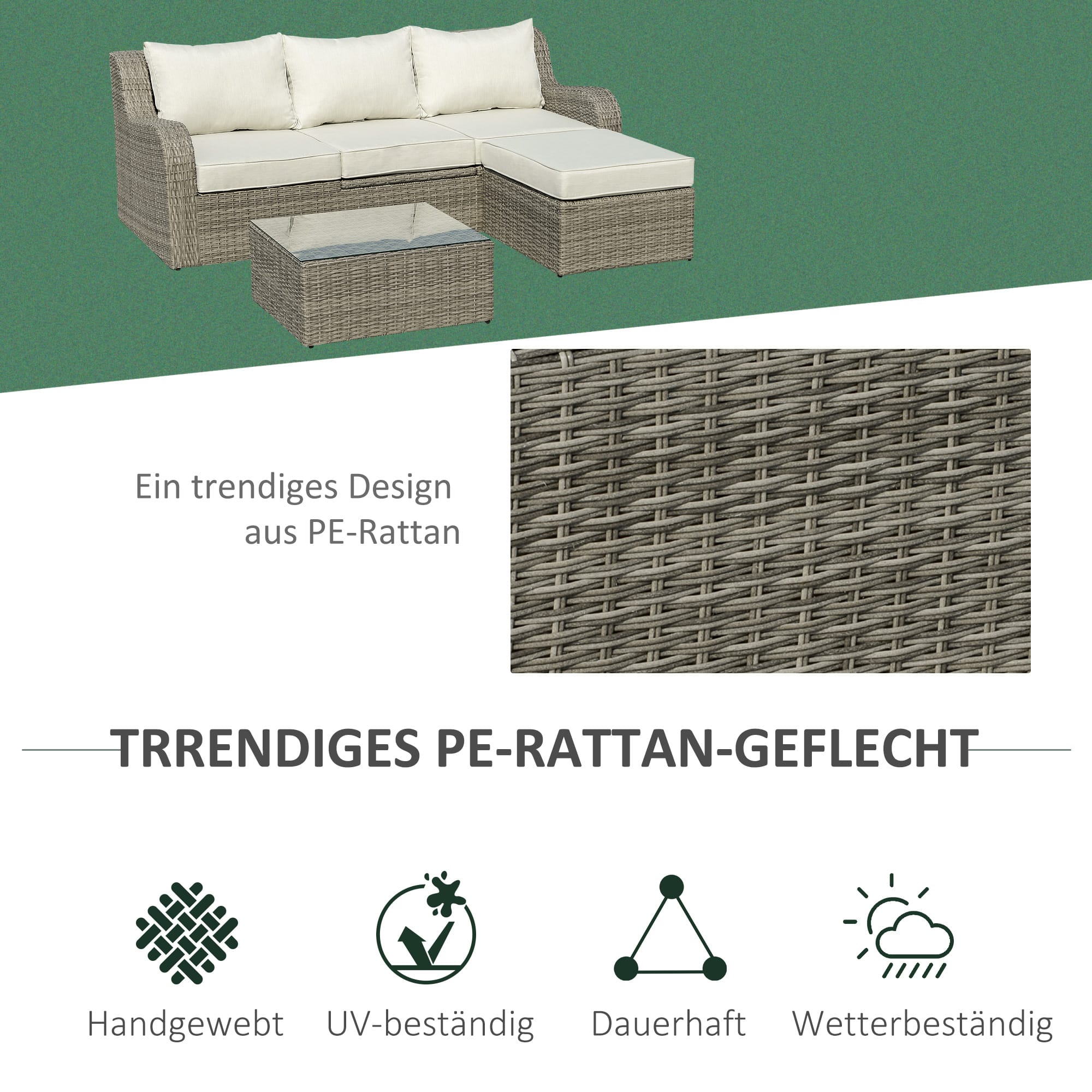 Tuinmeubelset – Polyrattan – 3 personen – Aluminium – Lichtgrijs