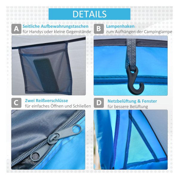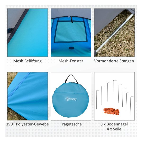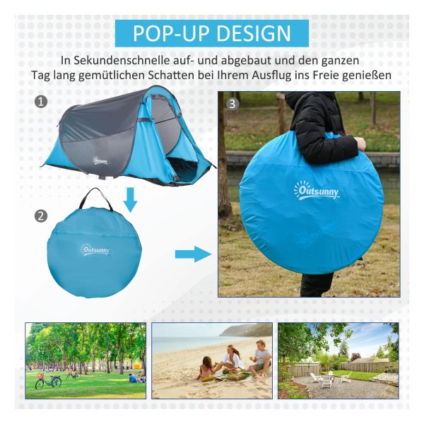 Tent – Pop-up – Polyester – Blauw/Grijs (1–2 personen)