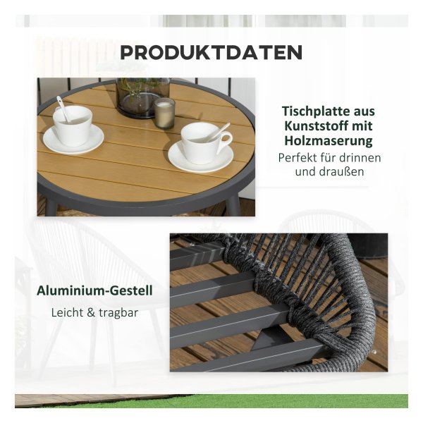 - Kleur: donkergrijs PE-touw, natuurlijk tafelblad, donkergrijze stof