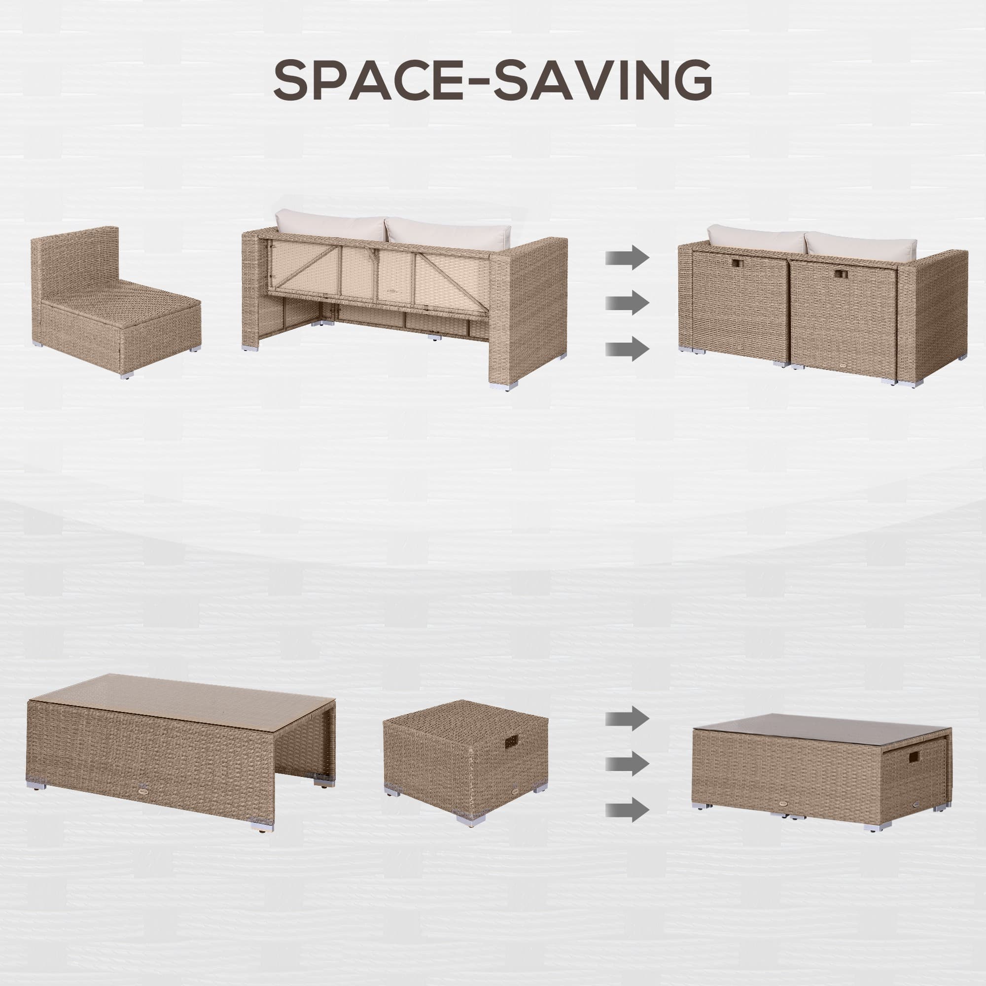 Deze moderne en karaktervolle tuinset van ComfortLine biedt u de mogelijkheid om uw buitenruimte volledig naar uw wensen aan te passen. De set bestaat uit een tweezitter, twee single-sofa’s, twee voetenbanken en een salontafel, allemaal uitgevoerd in een prachtige kaki kleur.