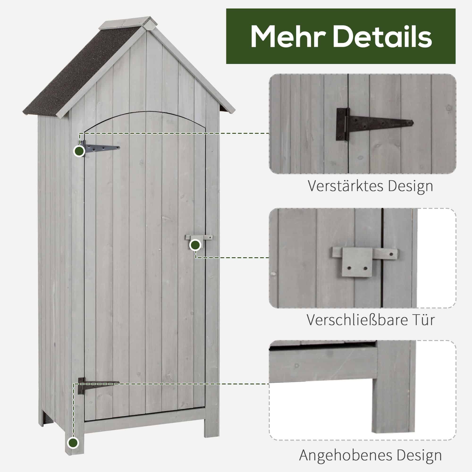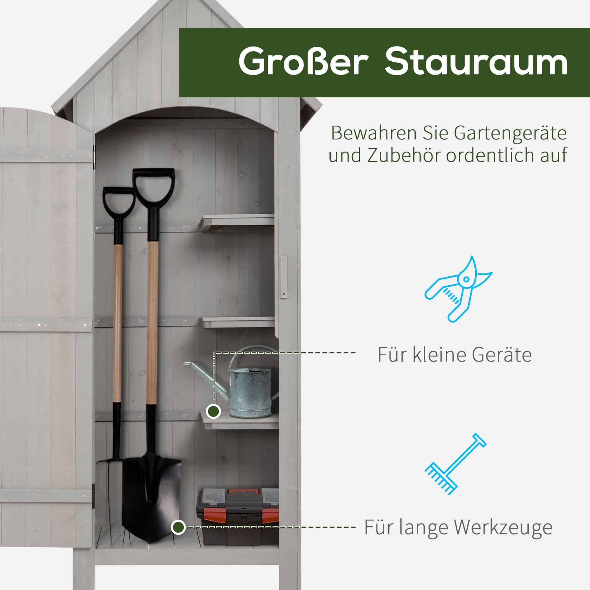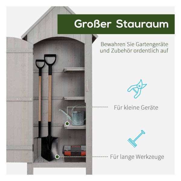 De plankvloeren kunnen tot 25 kg per vloer dragen en het maximale draagvermogen per compartiment is 10 kg. Gedetailleerde installatie-instructies maken het eenvoudig om de tuinschuur te monteren.