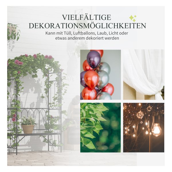 De rozenbank biedt niet alleen een romantische sfeer in uw tuin of op uw terras, maar dient ook als een comfortabele zitplaats voor u en uw gasten. Het stevige metalen frame is robuust, duurzaam en weerbestendig, waardoor u jarenlang plezier zult hebben van dit meubelstuk.