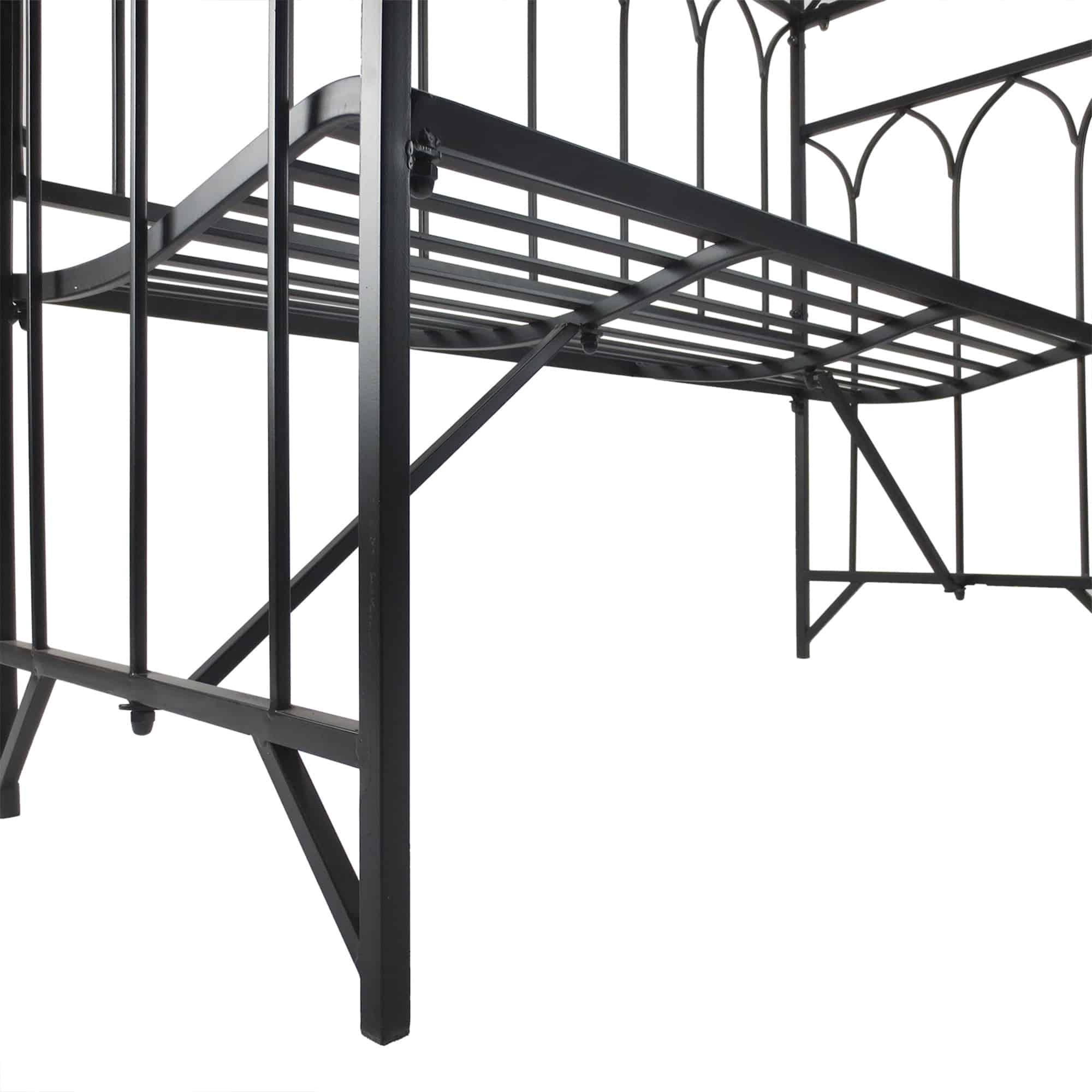 Bullet Point 4 | Aanvullende indiening: Op twee driehoekige planken tussen de metalen staven kunt u huisvesting, sjaals of decoratieve items |