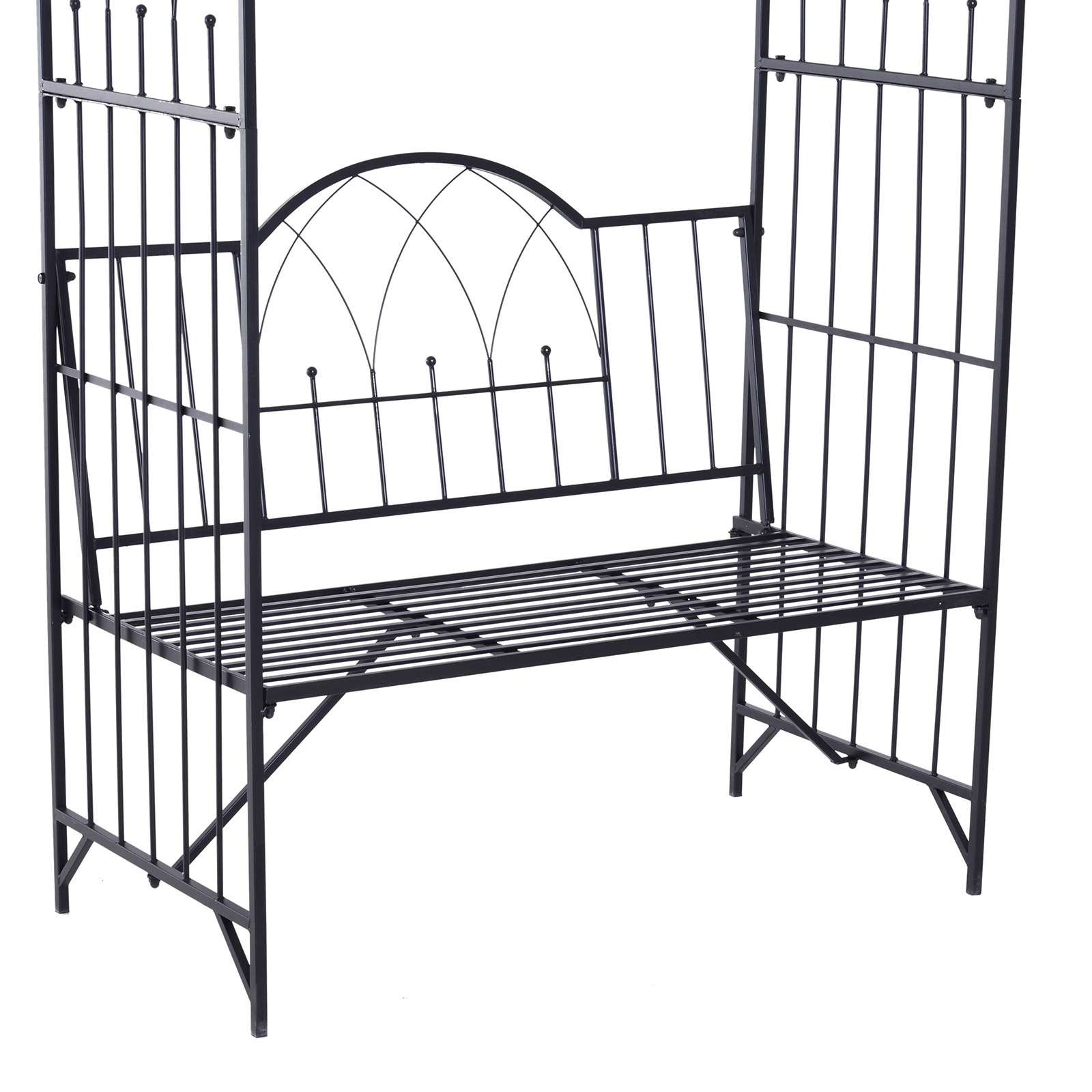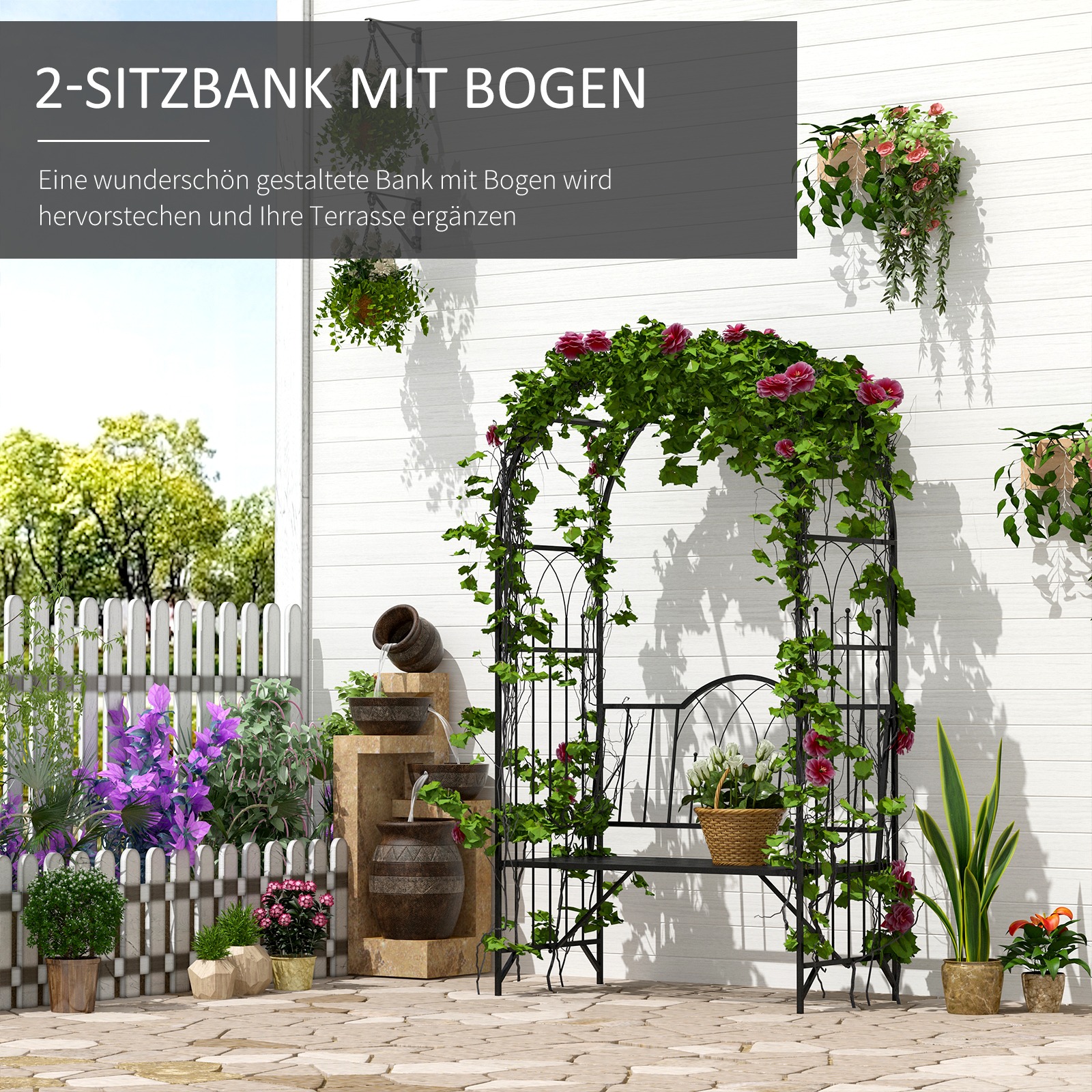 Het klimrek aan de zijkanten van de bank biedt de mogelijkheid om planten en bloemen te laten groeien, waardoor je een groen accent toevoegt aan je tuin. Dit maakt de tuinbank niet alleen een zitplaats, maar ook een decoratief element in je buitenruimte.