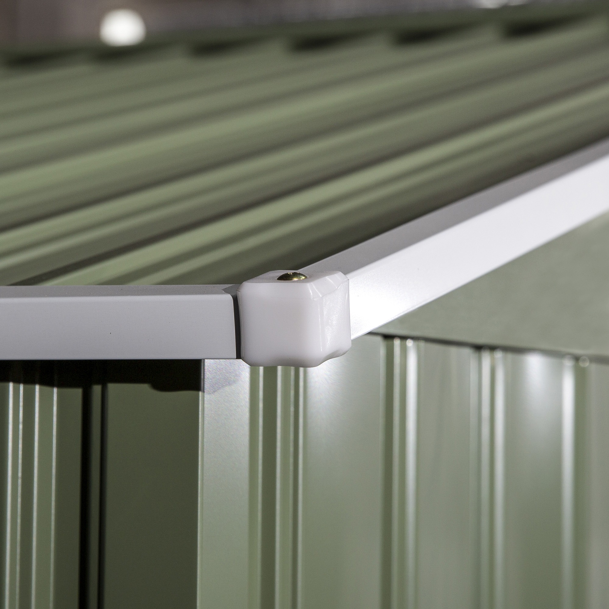 Met afmetingen van 277L x 195B x 192H cm biedt deze tuingereedschapsopslag voldoende ruimte voor al uw gereedschap. De 2 gladde schuifdeuren met witte deurframes zorgen voor gemakkelijke toegang, terwijl de ventilatieopeningen aan de voor- en achterkant zorgen voor een goede luchtcirculatie, waardoor uw gereedschap veilig en goed geventileerd wordt opgeborgen.