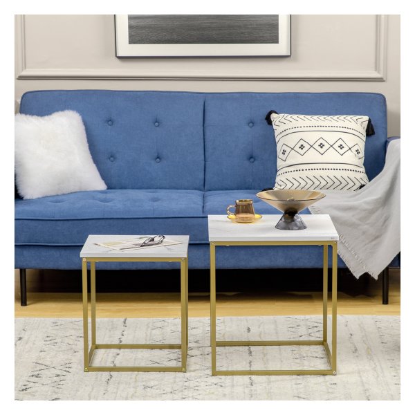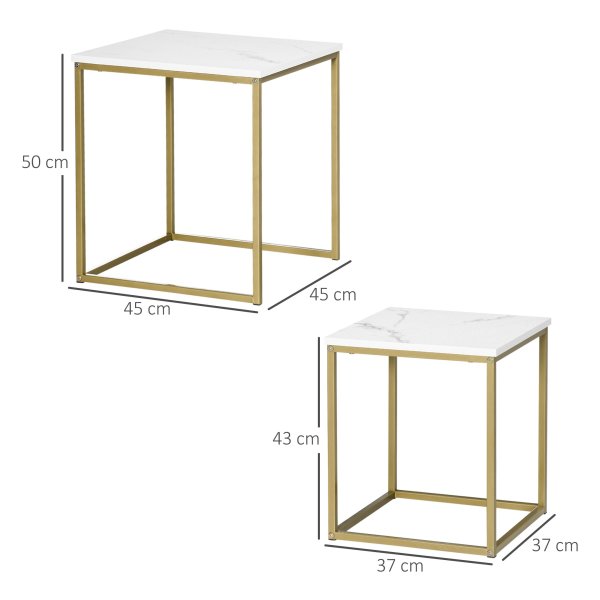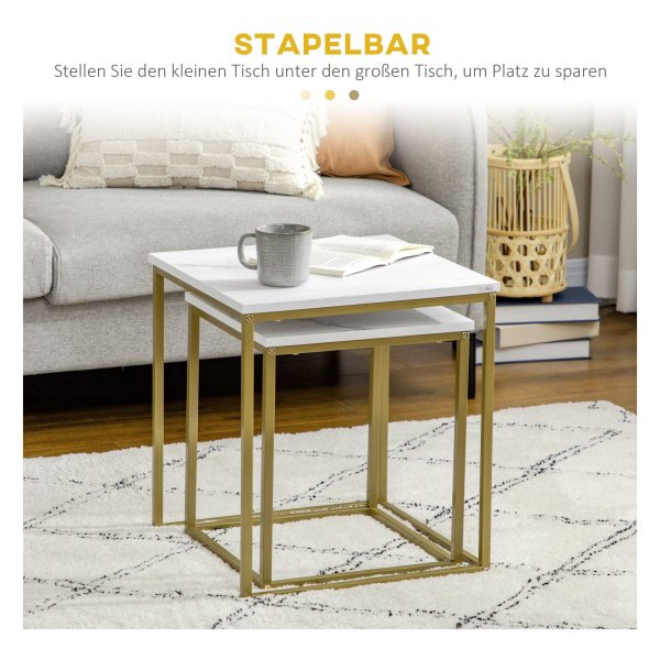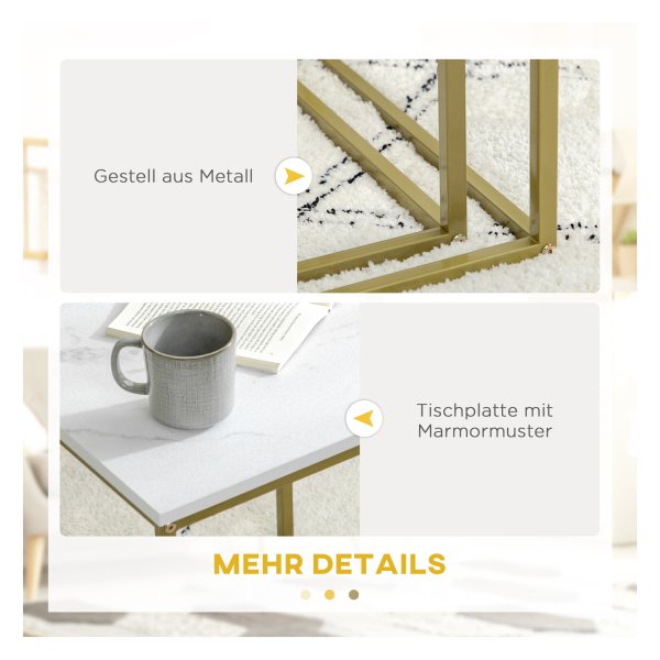 Marmeren – Bijzettafel set – Stalen frame – Wit