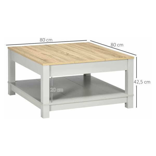 Salontafel – Natural Living – Plank – Vierkant – Lichtgrijs